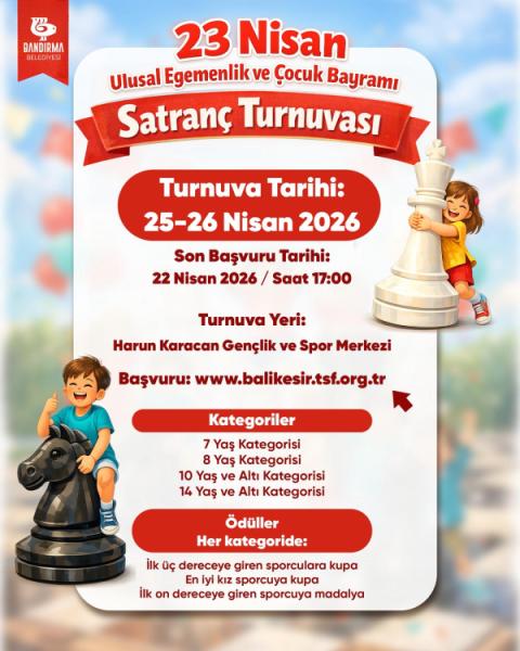 23 Nisan Ulusal Egemenlik ve Çocuk Bayramı Satranç Turnuvası