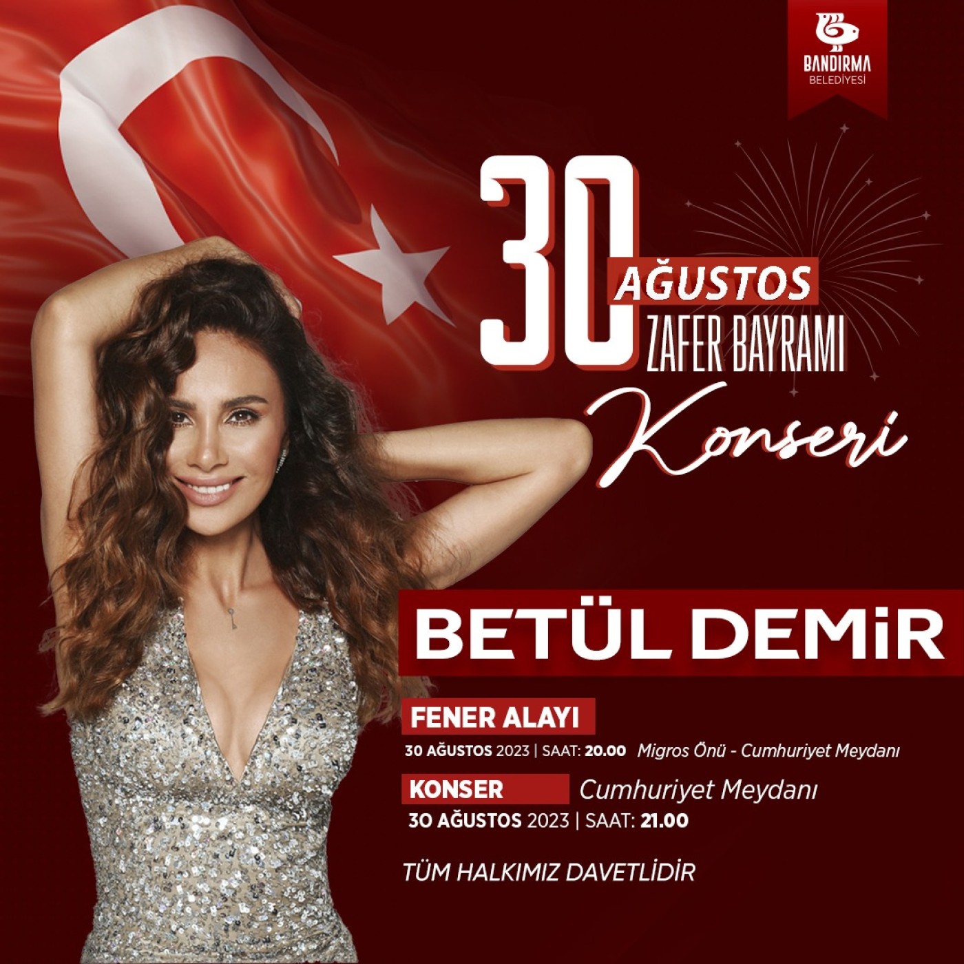 30 Ağustos Zafer Bayramı etkinliklerimiz kapsamında; Fener alayı ile caddeler çoşkuyla dolacak ve Betül Demir konseriyle heyecan doruklara çıkacak.