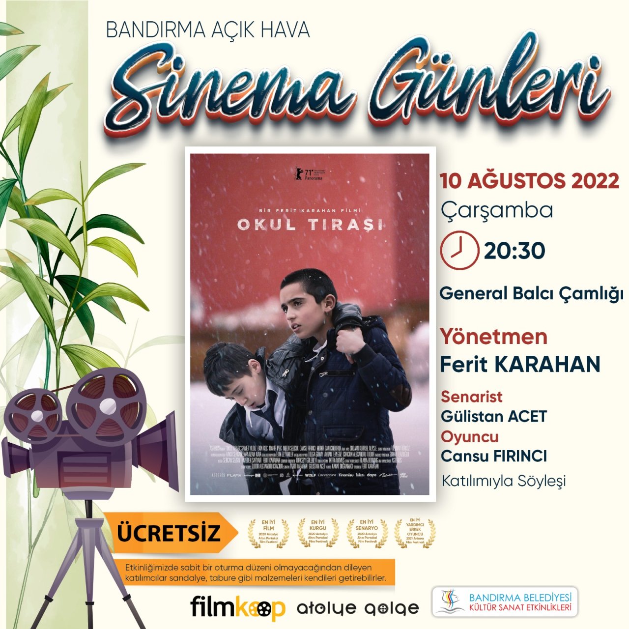10-14 Ağustos 2022 tarihleri arasında düzenlenecek "Açık Hava Sinema Günleri " etkinliğine tüm halkımız davetlidir.