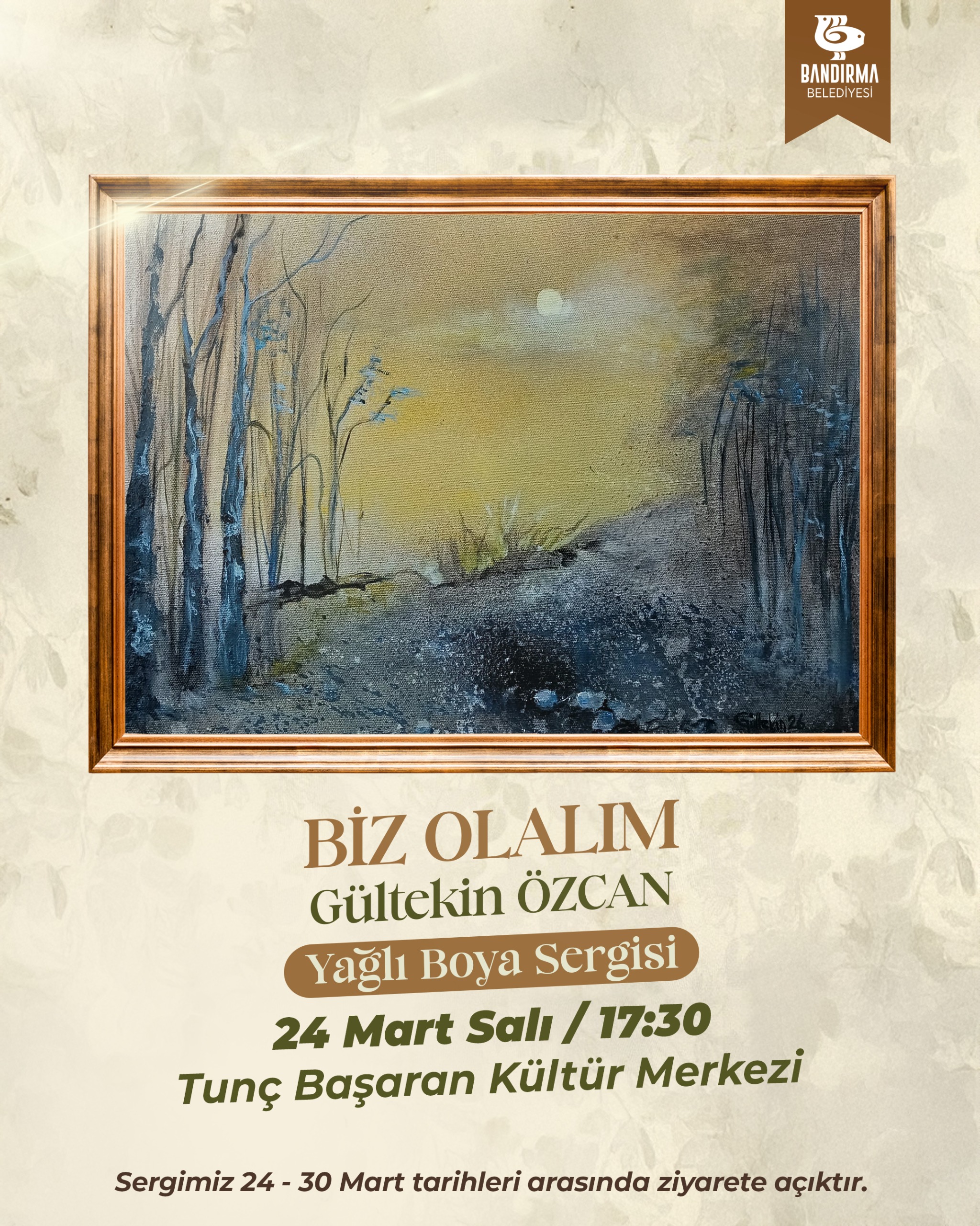 Yaşamının her döneminde; edebiyattan tiyatroya, resimden müziğe sanatın farklı disiplinleri ile hep iç içe olan değerli sanatçımız Gültekin Özcan “Biz Olalım” isimli yağlı boya resim sergisinde, tuvallere yansıyan hayatın gerçeklerine tanık olacaksınız.