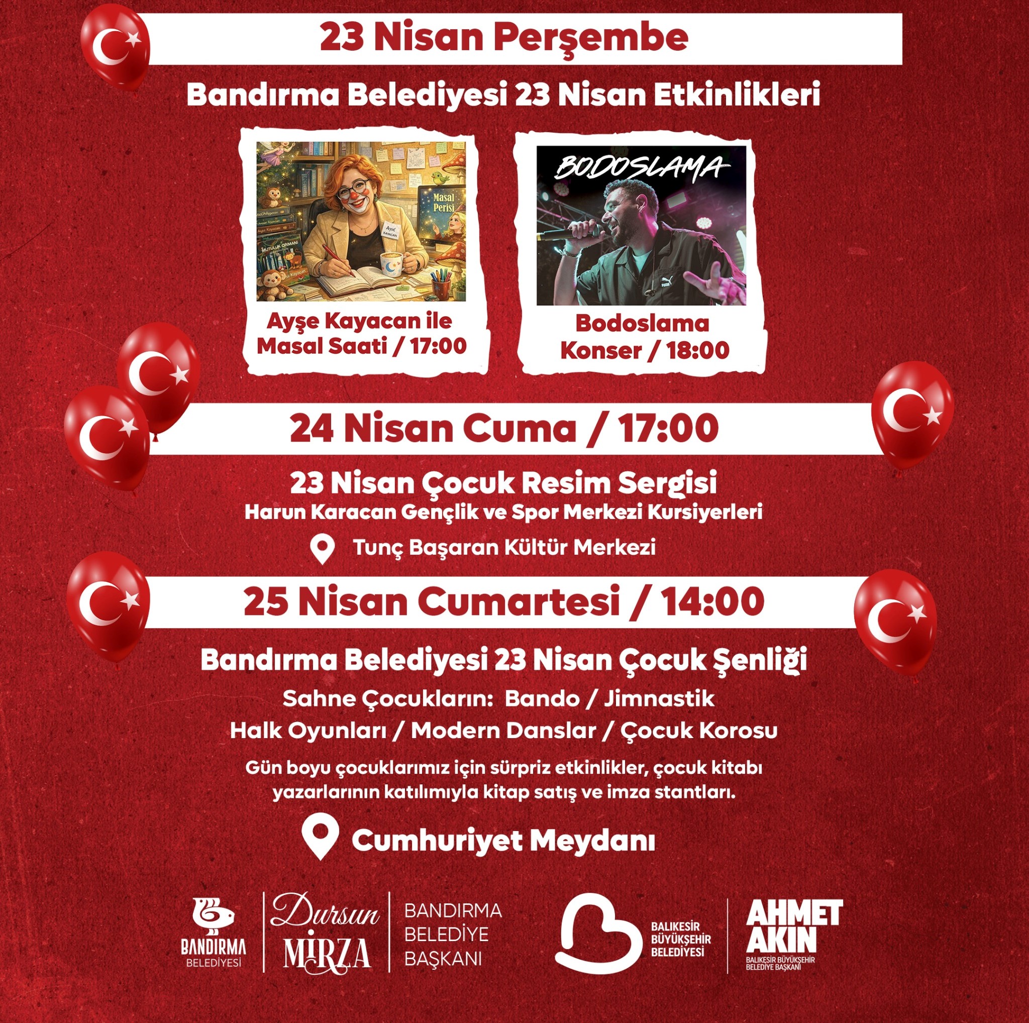 ⏰14:00 – Bandırma Belediyesi 23 Nisan Çocuk Şenliği
