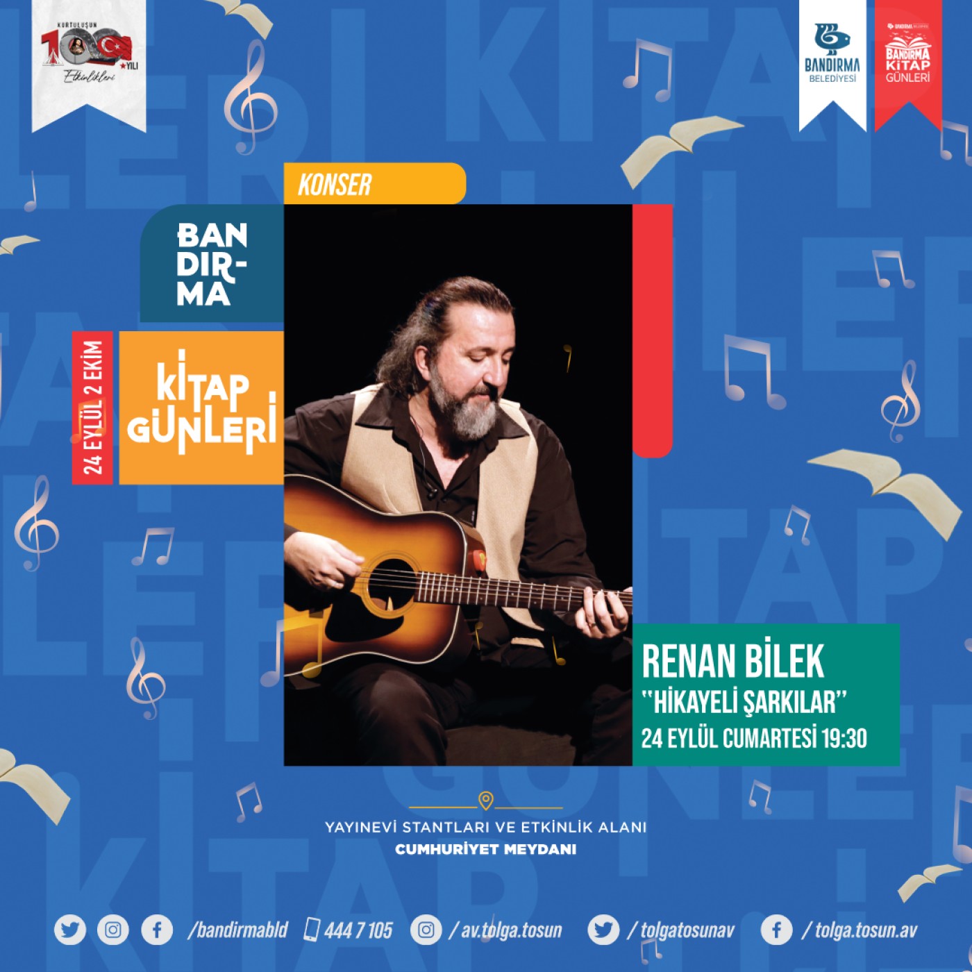 Müzisyen ve tiyatro oyuncusu Renan Bilek, 4. Bandırma Kitap Günlerinde harika bir dinleti programıyla halkımızla buluşacak.