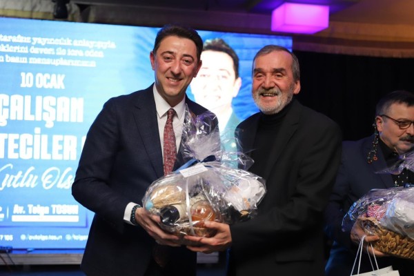 Konuşmalarının ardından Basın Mensupları için hazırlanan hediye sepetlerini Belediye Başkanı Av. Tolga Tosun tarafından bizzat takdim edildi.