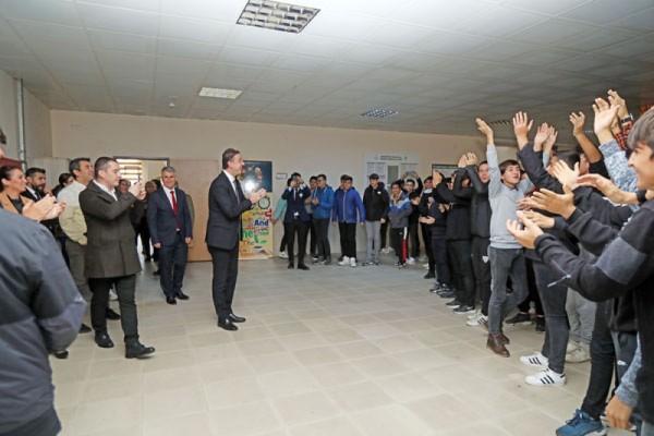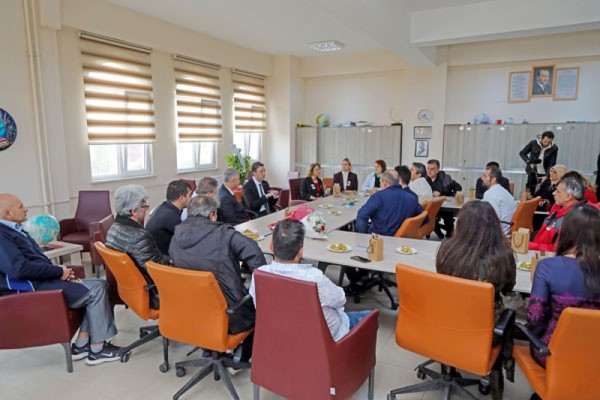 Belediye Başkanımız Av. Tolga Tosun, programlanan okul ziyaretlerinin ilkini belediye meclis üyemiz Fatma Karabacakoğlu’nun müdürlüğünde faaliyetlerini sürdüren Özel Ergün Kavram Anadolu Lisesi’ne gerçekleştirdi. Burada kurumda çalışan eğitimcilerle bir araya gelen Av. Tolga Tosun sıcak ve samimi ortamda gerçekleşen görüşmenin ardından, öğretmenlere günün anlam ve anısına ithafen özel olarak hazırlanan hediyelerini takdim etti. Ziyaretlerine Yavuz Sultan Selim Anadolu Lisesi’yle devam eden Belediye Başkanımız, sonrasında Mesleki ve Teknik Anadolu Lisesi’nde öğretmenlerle buluştu. Buradaki ziyareti sırasında öğrencilerinde yoğun ilgi gösterdiği Av. Tolga Tosun, ziyaretlerine Haydar Çavuş Mesleki ve Teknik Lisesi’nde öğretmenlerle buluşarak devam etti. 24 Kasım Öğretmenler Günü münasebetiyle gerçekleştirilen ziyaretler esnasında İlçe Milli Eğitim Müdürü Mutlu Arslan’ın makamını da ziyaret eden Av. Tolga Tosun burada ilçemizde faaliyet gösteren eğitim kurumları ve eğitim çalışmaları hakkında bilgi alışverişinde bulundu. Son dönemde gerçekleştirdikleri TUBİTAK projeleriyle adından söz ettiren Enerji Sa Fen Lisesi’nde gerçekleştirilen ziyaret esnasında ise Belediye Başkanımız okul içerisinde faaliyet gösteren laboratuvar alanlarını da dolaşarak, kurumun gerçekleştirdiği projeler hakkında bilgi aldı. Ziyaretlerinin son bölümünde Belediye Başkanımız Av. Tolga Tosun, Recep Gençer Mesleki ve Teknik Lisesi’nde öğrenciler ve öğretmenler tarafından hazırlanan kutlama programına katılım sağladı.