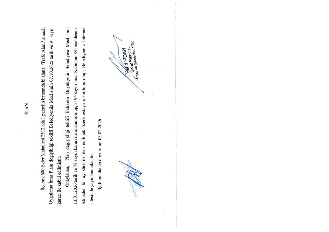 İlgililere ilanen duyurulur. 03.02.2026