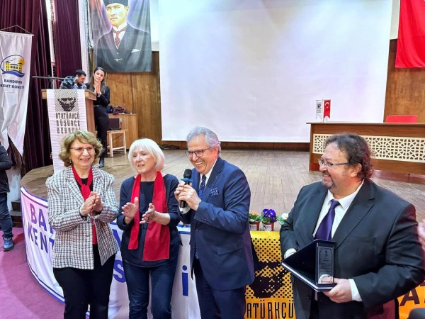 8 Mart Dünya Emekçi Kadınlar Günü etkinliklerimiz kapsamında değerli gazeteci ve yazar Sn. Banu Avar’ı Bandırma’da ağırladık. Banu Avar, yıllardır süregelen mücadelesiyle emperyalizmin ulusları, ülkeleri nasıl bölüp parçaladığını ve yönetmeye çalıştığını anlattı. Ancak bu düzenin artık sadece devletleri değil, kadınları, erkekleri ve çocukları bile ayrıştırmaya çalıştığını vurguladı. Bizler, Büyük Önderimiz Mustafa Kemal Atatürk’ün ilke ve devrimlerinin ışığında, eşitlik ve özgürlük mücadelesine kararlılıkla devam edeceğiz. Kadını ve erkeği eşit bir Türkiye’ye mutlaka ulaşacağız. Etkinliklerimiz kapsamında, günün anlam ve önemine ithafen tüm kadınlarımıza çiçeklerimizi de takdim ettik. Kadın hakları, eşitlik ve özgürlük mücadelesinde her zaman kadınların yanındayız! Atatürkçü Düşünce Derneğimize, Kent Konseyimize ve katılım gösteren tüm hemşehrilerimize teşekkür ediyoruz.