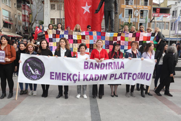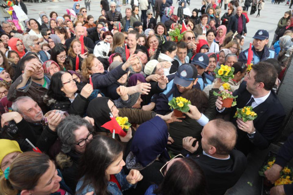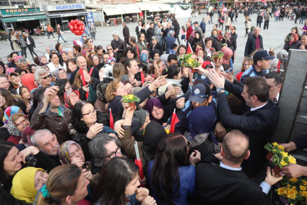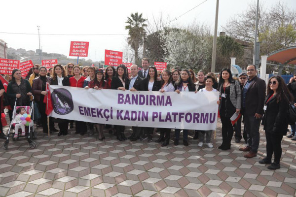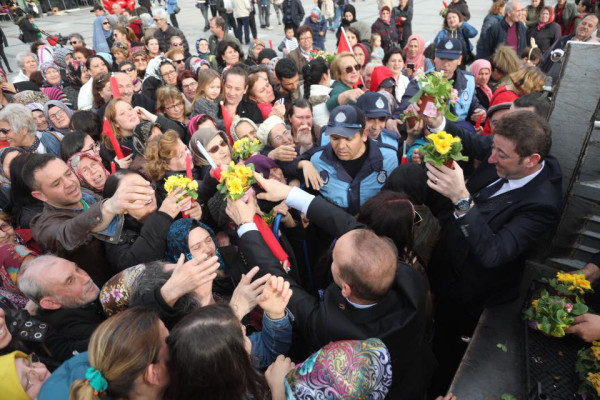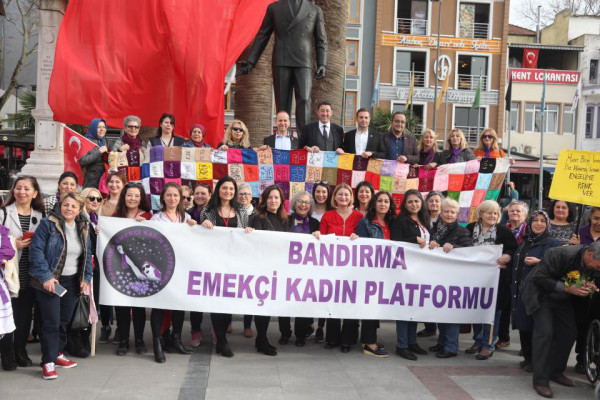 8 MART DÜNYA EMEKÇİ KADINLAR GÜNÜ KENTİMİZİDE KUTLANDI   Belediye Başkanı Av. Tolga Tosun Bandırma Emekçi Kadın Platformunun organize ettiği 8 Mart Dünya Emekçi Kadınlar Günü yürüyüşüne katıldı. Yürüyüş sonrasında Cumhuriyet Meydanında günün anlam ve önemini belirten konuşmaların yapılmasının ardından, Belediye Başkanı Av. Tolga Tosun kadınlara çiçek takdim etti.