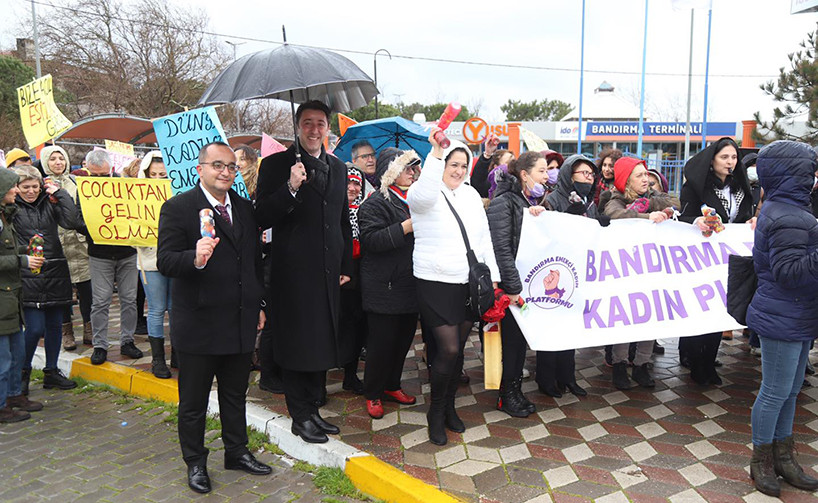 8 MART DÜNYA KADINLAR GÜNÜ YÜRÜYÜŞÜ YOĞUN YAĞIŞ ALTINDA YAPILDI Belediye Başkanı Av. Tolga Tosun Bandırma Emekçi Kadın Platformunun organize ettiği 8 Mart Dünya Emekçi Kadınlar Günü yürüyüşüne katıldı. Yoğun yağış altında yapılan yürüyüş sonrasında Cumhuriyet Meydanında yapılan tiyatral gösterinin ardından günün anlamını, önemini belirten konuşmaların ve basın açıklamasının ardından etkinlik son buldu.