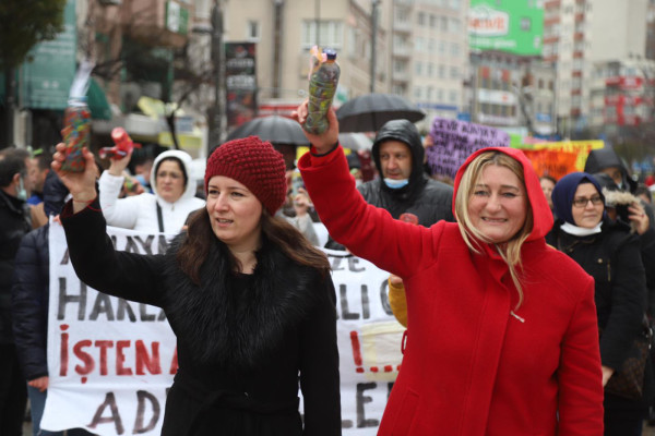 8 MART DÜNYA KADINLAR GÜNÜ YÜRÜYÜŞÜ YOĞUN YAĞIŞ ALTINDA YAPILDI