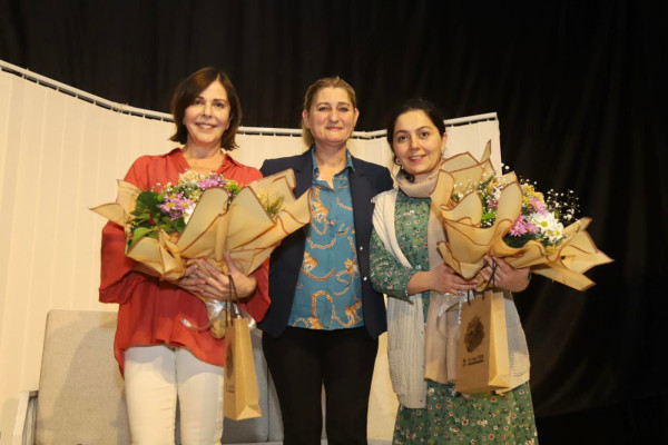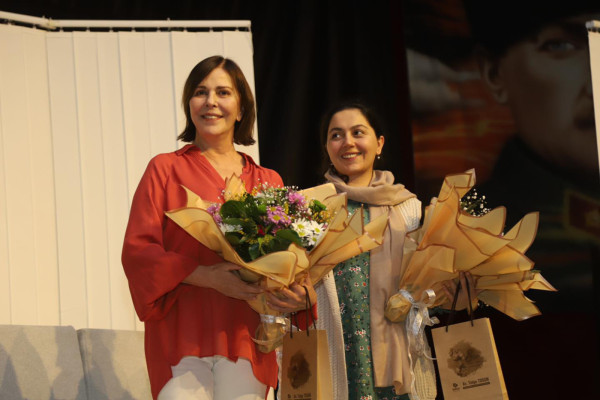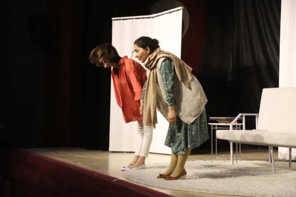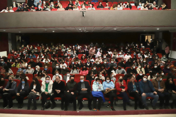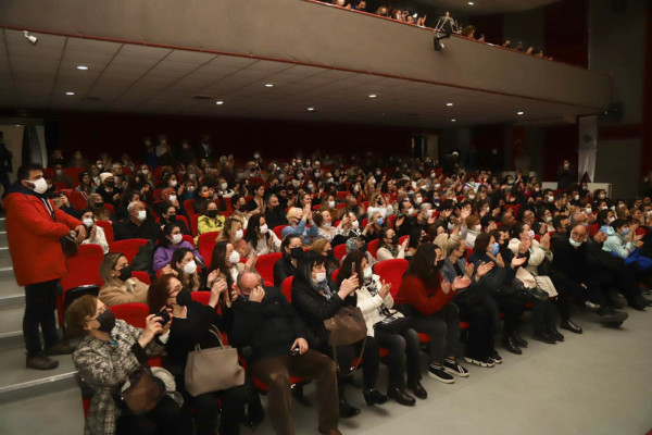 ACI KAYBIMIZ OYUNUNA TİYATROSEVERLER’İN YOĞUN İLGİSİ Bandırma Belediyesi 8 Mart Dünya Kadınlar Günü Etkinlikleri Kapsamında düzenlenen tiyatro oyunlarının üçüncü gününde "Acı Kaybımız" isimli oyunu, Barış Manço Kültür Merkezinde tiyatro severlerle buluşturdu. Usta oyuncu Lale Mansur ile genç ve başarılı oyuncu Gizem Aldemir'in rol aldığı, ‘Acı Kaybımız’ Kadın Oyunları Festivali Kapsamında sahneye taşınan oyun, kendi hayatlarında bile figüran olan ve birbirinden çok farklı yaşamlara sahip iki kadının, benzer hikayesini anlattı. Kara komedi tarzındaki oyun Bandırmalı tiyatroseverlerden büyük beğeni topladı. Oyun biletlerinin ücretsiz olarak günler öncesinden tükendiğini belirten Belediye Meclis Üyesi Fatma Sibel Salı Karabacakoğlu; “Bandırma Belediyesi olarak birbirinden güzel oyunları ve ünlü oyuncuların performanslarının tiyatroseverlerimiz ile buluşturmaya devam ediyoruz. Kadınlar gününe özel dolu dolu birçok programımızı kadınlarımız ile buluşturuyoruz. Kadın Oyunları Festivali’ne de vatandaşlarımızın göstermiş olduğu ilgi bizleri mutlu ediyor. Oyuncularımıza böylesi güzel bir oyunu Bandırmamızda sergiledikleri için çok teşekkür ediyorum” dedi. Oyun sonunda Meclis Üyesi Fatma Sibel Salı Karabacakoğlu günün anlam ve önemini dair oyuncular Lale Mansur ve Gizem Aldemir’e teşekkür ederek çiçek takdim etti.