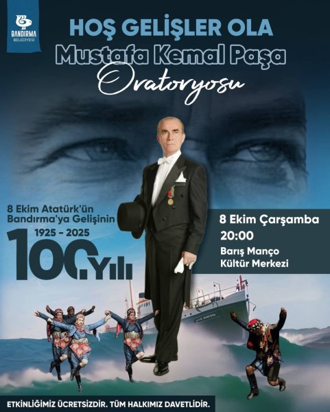 Ulu Önder Gazi Mustafa Kemal Atatürk’ün Bandırmamızı ilk kez ziyaret edişinin 100. yıl dönümü onuruna düzenlediğimiz, ücretsiz özel programda buluşalım.