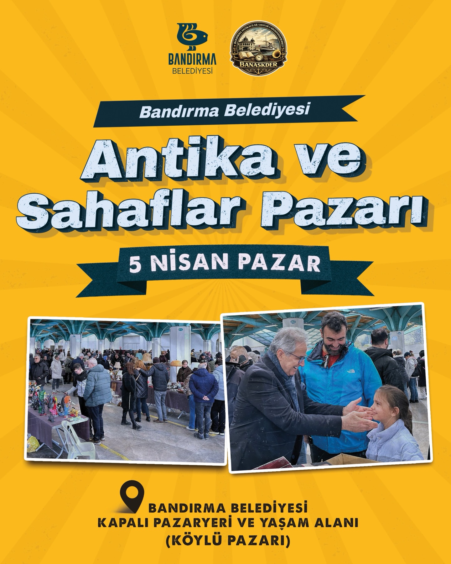 Bandırma Belediyesi ve Banaskder iş birliği ile düzenlenen Antika ve Sahaflar Pazarı koleksiyon meraklılarını, kitap tutkunlarını ve nostalji severleri bir araya getiriyor. Antika eşyalar, nadir kitaplar, plaklar ve daha fazlası sizleri bekliyor.
