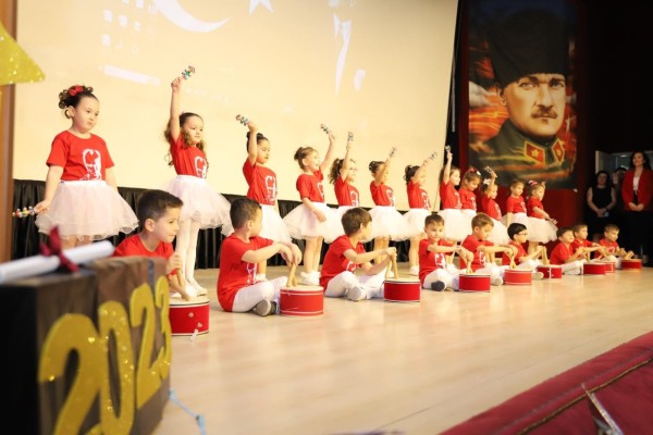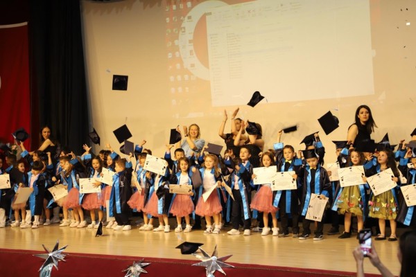 Konuşmaların ardından minik öğrenciler, özenle hazırladıkları gösterileri sahnelediler. Çocukların neşesi ve enerjisi deyim yerindeyse salondakileri büyüledi. Her biri gösterdikleri performans ile törene renk ve canlılık katarak unutulmaz bir atmosfer oluşturdular. 240 öğrencinin mezun olduğu program, Belediye Başkanı Av. Tolga Tosun, öğretmen ve öğrencileri eşliğinde hatıra fotoğrafı çekimi ve kep fırlatma seremonisi ile son buldu.