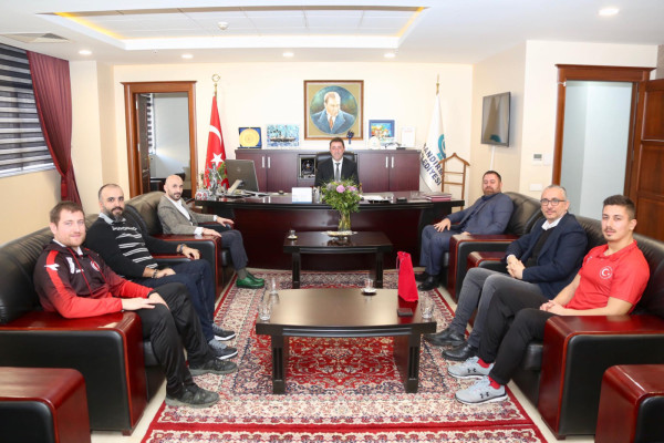 BANDIRMA JETS KORUMALI FUTBOL SPOR KULÜBÜ’NDEN ZİYARET   Bandırma Jets Korumalı Futbol Spor Kulübü Başkanı Ertan Taştan, Yönetim Kurulu Üyeleri, Milli Sporcuları Federasyon Başkanı Murat Pazan’la birlikte Belediye Başkanı Av. Tolga Tosun’u makamında ziyaret ettiler. Ziyaret ile ilgili bilgi veren Belediye Başkanı Av. Tolga Tosun: “Korumalı Spor, Softbol ve Beyzbol alanlarındaki faaliyetlerinden ve sporun Türkiye’deki yeriyle ilgili bilgi verdiler. Hangi dalda olursa olsun sporun yaygınlaşmasını önemsiyorum. Çalışmalarında başarılar diliyorum” dedi.