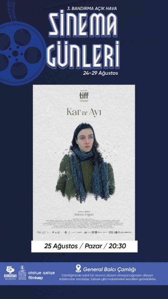Bandırma Belediyesi Kültür Sanat Etkinlikleri kapsamında 3.Bandırma Açık Hava Sinema Günleri'nde birbirinden özgün içeriklere sahip ödüllü filmler sinemaseverlerle buluşacak. 24-29 Ağustos tarihleri arasında Bandırma Belediyesi öncülüğünde Atölye Gölge ve Filmkoop katkılarıyla General Balcı Çamlığı'nda 20.30’da gerçekleşecek olan film gösterimleri ve söyleşi programı aşağıdaki gibidir: