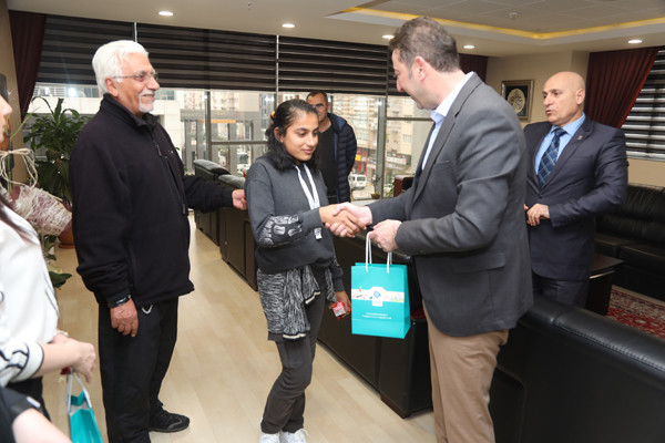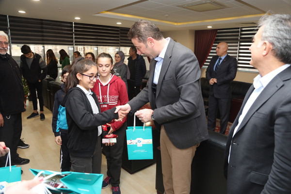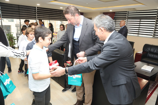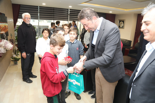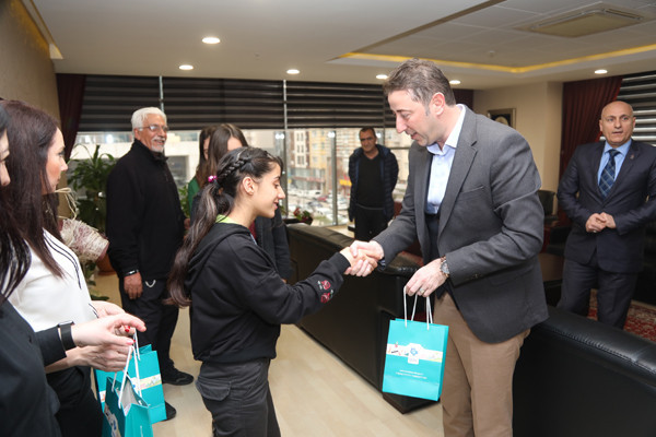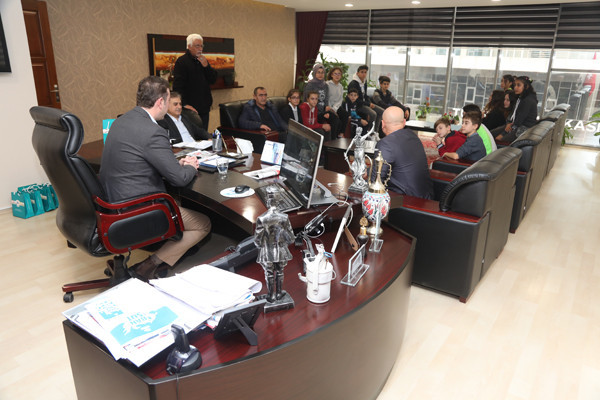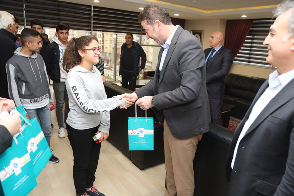 BAŞKAN AV. TOLGA TOSUN, MODERN PENTATLON ATLETLERİNE FORMA HEDİYE ETTİ   İlçe Gençlik ve Spor Müdürü Hüseyin Elüstü, Modern Pentatlon Antrenörü Mehmet Yıldırım, Eti Maden Ortaokulu Beden Eğitimi Öğretmeni Muammer Akkoyunlu ve Pentatlon atletleri, Belediye Başkanı Av. Tolga Tosun’u makamında ziyaret etti. Ziyarette Belediye Başkan Yardımcısı Metin Ok’ta yer aldı.   Pentatlon Antrenörü Mehmet Yıldırım, Modern Pentatlon’un, aynı gün içinde atıcılık, epe eskrim, serbest stil yüzme, binicilik ve 3 km. koşudan oluşan 5 yarışı içeren spor mücadelesi olduğuna değinerek; “Atletlerin Bandırmadaki Milli Eğitim Müdürlüğü’ne bağlı okullardaki öğrencileri özel yetenek testine tabi tutarak seçiyoruz. Yetenek testinden geçen öğrencilerin aileleri ile yüz yüze görüşerek tüm detayları görüşüyoruz bu şekilde ailelerinden izin alarak atletlerimizi Uluslararası standartlara uygun şekilde yetiştiriyoruz” dedi.   Hocalara ve atletlere nazik ziyaretleri için teşekkür ederek sözlerine başlayan Belediye Başkanı Av. Tolga Tosun: “Sizin gibi yetenekli sporcularımızın yetişmesi kentimiz ve ülkemiz adına çok önemli. İnşallah ileride sadece Bandırma ve Türkiye değil Uluslararası arenalarda ülkemizi en iyi şekilde temsil etme şansını yakalarsınız. Hepinizin gözlerindeki enerjiyi görebiliyorum. Sağlam kafa sağlam vücutta bulunur. Ne kadar çok spor yapar kendimizi geliştirirsek, aklımızda bir o kadar dinç olur. Bende birçok sporla ilgilendim, basketbol ve voleybol oynadım. 9-10 yaşlarında atletizmle uğraştım. Balıkesir bölgesinde 100 metrede birincilik uzun atlamada ikincilik derecelerim oldu. Hatta o dönemde madalyalarımı dönemin Belediye Başkanı Sedat Pekel’den aldım. Sizlere tavsiyem spordan kopmayın, sporu yaşam biçiminize yerleştirirseniz hem kötü alışkanlıklardan uzak kalırsınız hem da sağlıklı bir yaşam sizlerin olur. Sporu hayatınızdan eksik etmediğiniz sürece hem Belediye hem de Spor Vakfı olarak siz sporculara her zaman imkanlarımız ölçüsünde destek olmaya devam edeceğiz” dedi.   Konuşmaların sonunda Belediye Başkanı Av. Tolga Tosun ve Belediye Başkan Yardımcısı Metin Ok atletlere forma hediye etti.