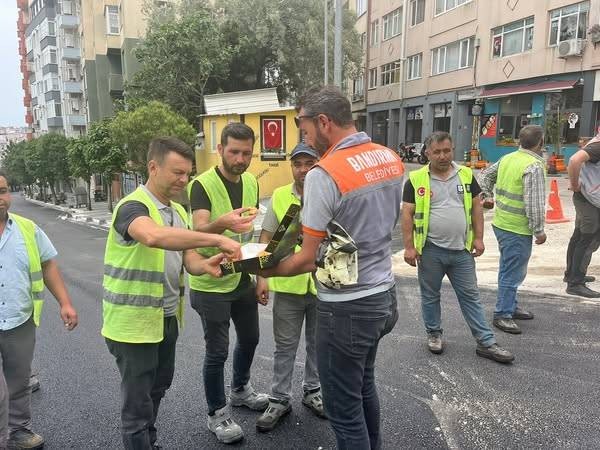 Belediye Başkanımız Sn. Dursun Mirza, Mehmetçik Caddesi’nde çalışan ekip arkadaşlarımıza tatlı ikramında bulunarak emekleri için teşekkür etti. Tüm çalışma arkadaşlarımıza gayretleri ve özverileri için teşekkür ediyoruz. Daha güzel bir Bandırma için çalışıyoruz.