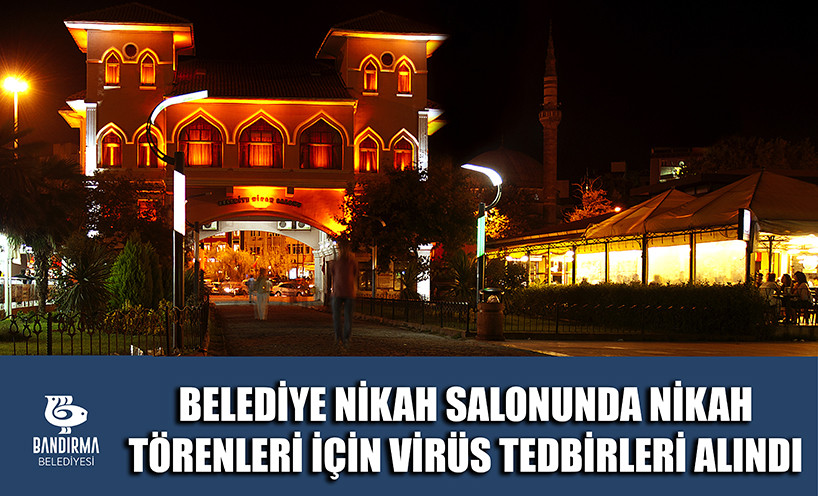 BELEDİYE NİKAH SALONUNDA NİKAH TÖRENLERİ İÇİN VİRÜS TEDBİRLERİ ALINDI   Koronavirüs önemlileri kapsamında Belediyemiz evlendirme dairesindeki tüm nikahların geçici bir süreliğine törensiz bir şekilde gerçekleşeceği öğrenildi. Nikah sırasında sadece iki şahit ile birlikte gelin ve damadın anne ve babaları yer alacağı onların dışına başka kişilerin nikaha iştirak etmelerine izin verilmeyeceği kaydedildi.
