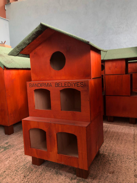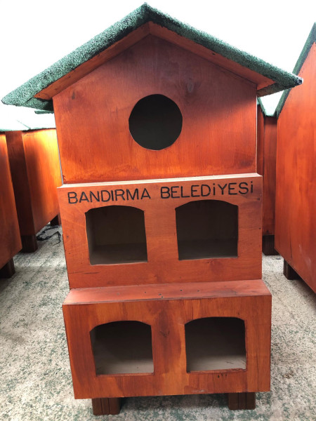 BELEDİYEMİZDEN MİNİK DOSTLARIMIZ İÇİN GÜVEN ÇATISI. Bandırma Belediyesi tarafından kentimizdeki minik dostlarımızın güvenle barınmasını sağlamak amacıyla yeni kulübeler ve kedi evlerinin üretimine geçildi. Üretim aşamasının ardından kulübeler ve kedi evleri başta Belediye Sokak Hayvanları Geçici Bakım Evi bünyesine ve sokak hayvanlarının kentimizin faklı noktalardaki beslenme alanlarına yerleştirilecek.   Belediye Destek Hizmetleri Müdürlüğü ekiplerince yapımına başlanan yeni kulübeler, sokak hayvanlarının yağmurlu ve soğuk havalarda daha güvenli ve korunaklı bir şekilde barınmalarını sağlamak amacıyla üretildi. İlk etapta 50 adet köpek kulübesi ve 10 adette kedi evinin yapımı tamamlanırken ilerleyen aşamalarda ihtiyaç alanlarına göre yeni kulübelerin üretimine devam edilecek.