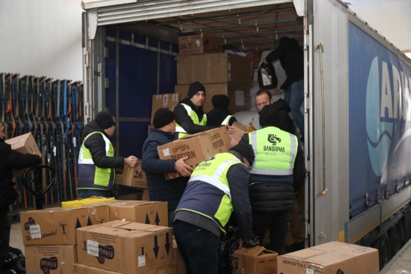 Bandırma Belediyesi, deprem felaketinin meydana geldiği ilk saatlerde hiç vakit kaybetmeden acil olarak toplandı. Belediye Başkanı Av. Tolga Tosun, aynı günün sabahı ilçede iki yardım toplama noktası belirlediklerini duyurdu. Bunun üzerine tek yürek olan vatandaşlar deprem mağdurları için akın akın yardım getirmeye başladı. Felaketin ilk gününden itibaren her gün, sabah erken saatlerden gece yarılarına dek toplanan yardımlar, olabilecek en hızlı şekilde deprem bölgelerine gönderildi. Ekipler sevkiyat için 24 saat aralıksız çalıştı. Depremzedelerin ihtiyaç duyduğu yiyecek, içecek, giyinme, barınma, tıbbi malzeme ve benzeri yüzlerce çeşit ihtiyaç malzemesi bölgeye gönderildi.