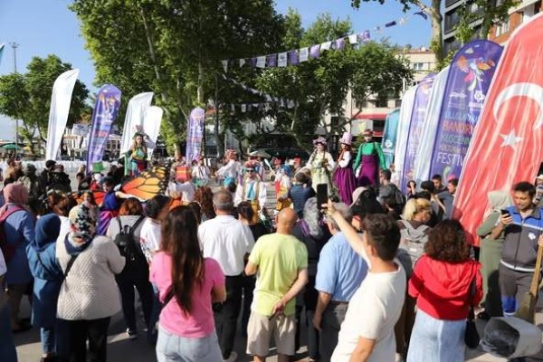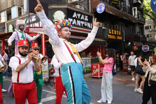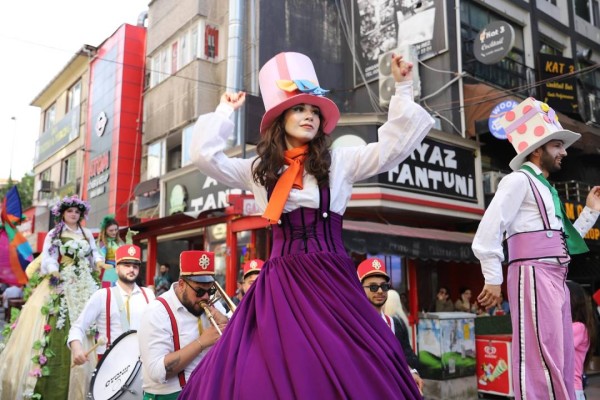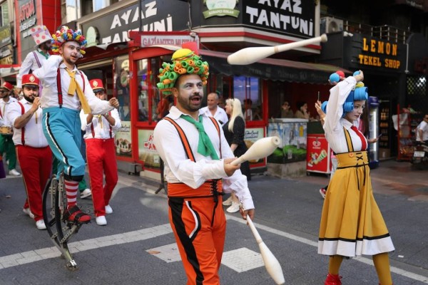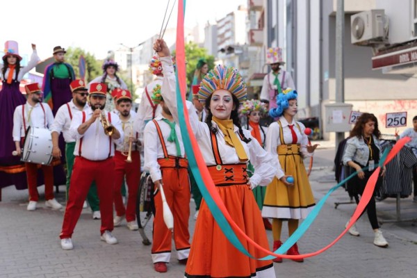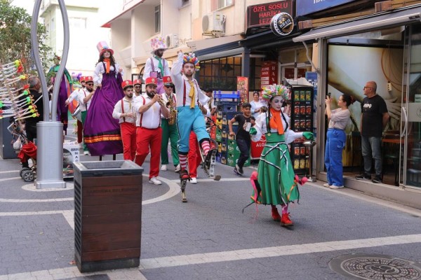 Büyük Festival Kortej yürüyüşü öncesi şov ekibi Bandırma’mızın sokaklarını şenlendiriyor