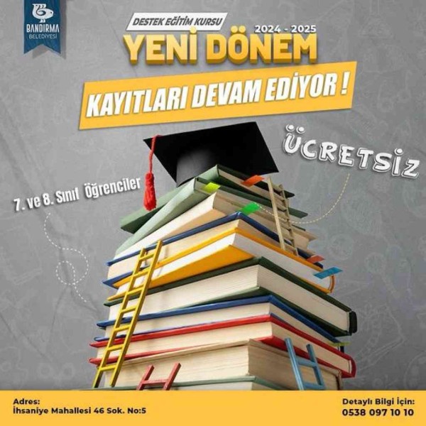 2024-2025 Yılı Eğitim Öğretim Dönemi Destek Eğitim Kurslarımızın yeni dönem kayıtları 7. ve 8. sınıf öğrencilerimiz için devam ediyor. Detaylı bilgi ve iletişim için; 0538 097 10 10