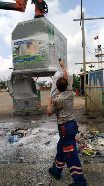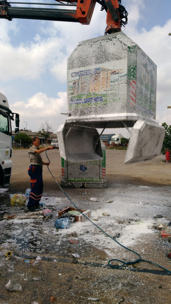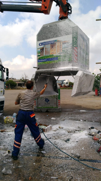 ÇÖP KONTEYNERLERİ TEMİZLEME ÇALIŞMALARI BAŞLADI   Bandırma Belediyesi Temizlik İşleri ekipleri çöp konteynırlarının temizleme çalışmalarına başladı.   Konteynerlerin kötü kokulara neden olmasını önlemek ve çevre sağlığına olumsuz etkilerini ortadan kaldırmak amacıyla başlatılan çalışmalarda ekipler dezenfekte işlemlerini yıl içinde periyodik olarak yerine getiriliyor.   Kent genelinde belirli bir program dahilinde sürdürülen çalışmalarda temizleme işlemi konteyner yıkama ve dezenfekte aracıyla yapılıyor. İşlem sırasında özel tasarım kamyonunun içine alınan konteynerler sıcak su ile yıkanırken, temizleme işlemi sayesinde çöp konteynerlerindeki pis koku ve sinek oluşumunun yanı sıra görüntü kirliliğinin de önüne geçilmiş oluyor. 3 dakika gibi kısa bir sürede konteynerlerin yıkaması gerçekleştirilirken, çevre dostu araç pis suyu kendi içerisinde barındırarak dışarı vermiyor. Yıkama işleminin yanı sıra doğaya zarar vermeyen özel solüsyonlar ile dezenfekte edilen konteynerler kısa sürede yeniden vatandaşlarımızın hizmetine sunuluyor.   Ayrıca kentimizin işlek bölgelerinde bulunan yerüstü çöp konteynerlerin de yerinden alınarak şantiye ortamında yıkama ve dezenfekte işlemleri tamamlanmasının ardından bulunduğu bölgeye tekrar bırakılıyor.