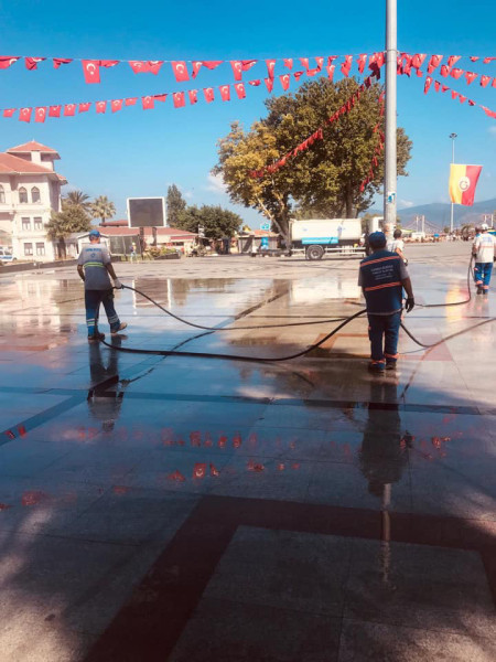CUMHURİYET MEYDANINDA DETAYLI TEMİZLİK GERÇEKLEŞTİRİLDİ