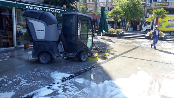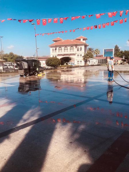 CUMHURİYET MEYDANINDA DETAYLI TEMİZLİK GERÇEKLEŞTİRİLDİ Temizlik İşleri Müdürlüğüne bağlı ekiplerimiz Bandırmanın uğrak noktası olan Cumhuriyet Meydanında özel temizlik araçları ile detaylı temizlik gerçekleştirdi. Bandırma Cumhuriyet Meydanı’nda bulunan Atatürk Anıtı, anıtın çevresi, banklar vb. birçok alan detaylı bir biçimde yıkanarak temizlendi. Meydan etrafında bulunan çöpler toplandı. Bandırma Belediyesi Temizlik İşleri Müdürlüğü’nün bünyesinde bulunan temizlik personelleri tarafından yapılan temizlik, bakım ve yıkama çalışmaları Kent merkezi olmak üzere tüm Bandırmada ve kırsal mahallelerde devam ediyor.