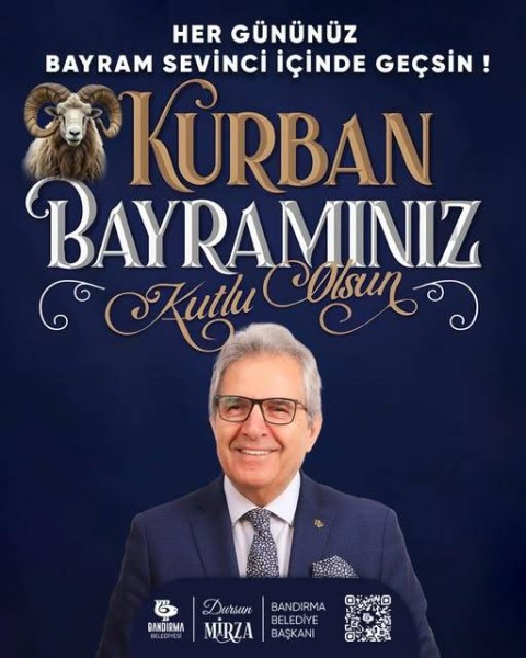 Değerli Bandırmalı Hemşehrilerim, Bayramlar; kardeşliğin, hoşgörünün, paylaşmanın ve dayanışmanın en güzel şekilde yaşandığı, gönüllerin birleştiği özel günlerdir. Kurban Bayramı da bizlere; ihtiyaç sahiplerini gözetmeyi, kırgınlıkları geride bırakmayı ve dostluk bağlarını daha da güçlendirmeyi hatırlatır. Birlik ve beraberliğe her zamankinden fazla ihtiyaç duyduğumuz bugünlerde; sevgi, saygı ve dayanışma duygularımızı büyütelim. Bayramın yarattığı huzur ve barış iklimini hep birlikte kentimize, ülkemize ve dünyamıza yayalım. Bu duygu ve düşüncelerle, tüm hemşehrilerimin ve milletimizin Kurban Bayramı’nı en içten dileklerimle kutluyorum. Sağlık, huzur ve mutluluk dolu nice bayramlar diliyorum.
