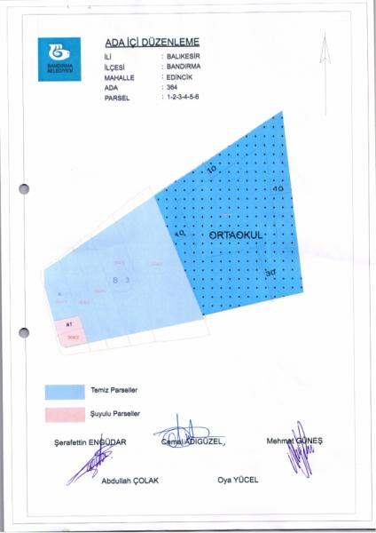 Belediye Encümeninin 25.03.2026 tarih ve 372 sayılı Encümen kararı ile, Edincik Mahallesi, 364 ada, 1-2-3-4-5-6-7-8 parselleri kapsayan ada içi düzenlemesinin, 1/1000 ölçekli Bandırma Uygulama İmar Planı notlarının 164. Maddesi ve 3194 sayılı İmar Kanununun 19. maddesi gereği onaylanmasına,