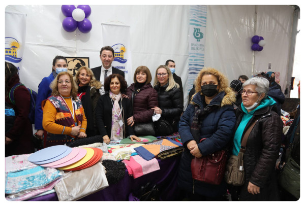 8 Mart Dünya Emekçi Kadınlar Günü etkinlikleri kapsamında hazırlanan El Emeği Festivali bugün; Bandırma Kaymakamı Engin Aksakal, Belediye Başkanı Av. Tolga Tosun, Bandırma 6. Ana Jet Üs Komutanı Hava Pilot Tuğgeneral Selahattin Akalp, Bandırma İlçe Emniyet Müdürü Soner Duran, CHP İlçe Başkanı Selim Panç, Meclis Üyeleri ve vatandaşların katılım sağladığı tören ile başladı. 144 tezgah ile kadınların evlerinde ürettikleri el emeklerini kazanca dönüştürmeyi amaçlayan festivale ilgi büyüktü. Törende açılış konuşması gerçekleştiren Belediye Başkanı Av. Tolga Tosun; “Bugün çok güzel bir amaca hizmet edecek festivalimizin açılışını gerçekleştiriyoruz. 8 Mart Dünya Emekçi Kadınlar günü etkinlikleri kapsamında 1-13 Mart arasında dolu dolu bir program hazırladık. Kadını el üstünde tutmaya çalışan bir anlayış ile belediyemizin her kademesinde kadınlarımıza görevler veriyoruz. Stand açan tüm kadınlarımıza hayırlı kazançlar diliyorum” dedi.