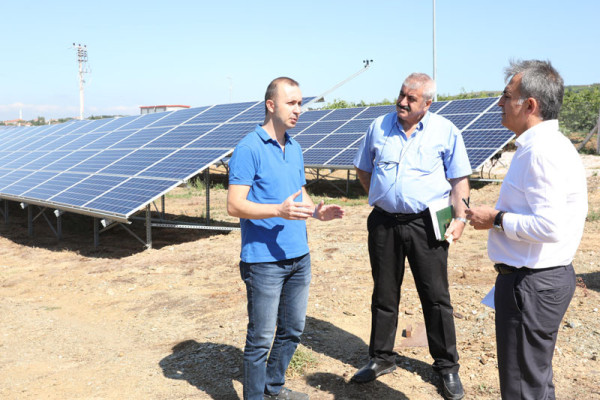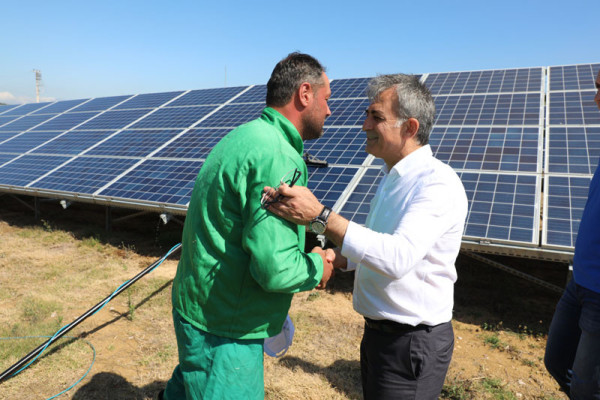 GÜNEŞ PANELLERİNİN BAKIMI YAPILIYOR Belediye Başkan Yardımcımız Metin Ok, Belediye Destek Hizmetleri Müdürü Ahmet Belli ve Belediye Elektrik – Elektronik Mühendisi Tansel Demirel ile Erikli Mahallesi’nde bulunan Bandırma Belediyesi Güneş Enerjisi Elektrik Üretim Tesisi’nde incelemelerde bulundu. Tesiste hizmet veren panellerin gerekli bakım, onarım ve temizlik çalışmalarını yerinde inceleyen Belediye Başkan Yardımcımız Metin Ok incelemelerden sonra: “Bandırmamıza bağlı Erikli Mahallesi mevkiinde bulunan Güneş Enerjisi Elektrik Üretim Tesisi, 2019’un ilk 6 ayında 818.858,59 kWh elektrik üreterek, toplamda 735.897 TL gelir elde etti” dedi. Belediye Başkan Yardımcısı Metin Ok incelemelerden sonra Çakıl Mahallesi sakinleri ile bir araya gelerek mahalle sakinleri ile sohbet etti.
