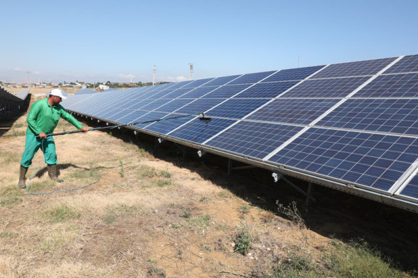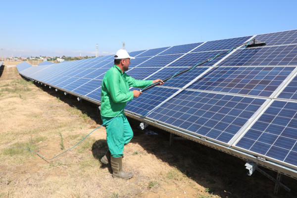 GÜNEŞ PANELLERİNİN BAKIMI YAPILIYOR
