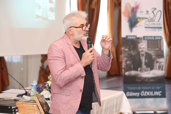 GÜNEY ÖZKILINÇ’IN “YÜZÜMDE NAZIM İZİ VAR” İSİMLİ SÖYLEŞİSİ NİKAH SALONUNDA GERÇEKLEŞTİ   30. Uluslararası Bandırma Kuşcenneti Kültür ve Turizm Festivali’nin son gününde araştırmacı, yazar, şair Güney Özkılınç ile Belediye Nikah Salonunda saat 14.00’de başlayan “Yüzümde Nazım İzi Var” isimli söyleşi Bandırmalılar tarafından ilgi ile takip edildi.   Yazar Güney Özkılınç, Nazım Hikmet’e olan hayranlığını, “Kendimi bildim bileli Nazım Hikmet’e hayranım” diyerek dile getirdi. Yazar Özkılınç, Nazım Hikmet’in ömrünün 13 yılını Türkiye’deki hapishanelerde geçirdiğini bunun da 11 yılını Bursa hapishanesinde geçirdiğine dikkati çekerek, “Nazım Hikmet, ömrünün 13 yılını Türkiye’deki hapishanelerde geçirmiş. 13 yılın 11 yılını Bursa’da geçirmiş. Nazım Hikmet bu 11 yılda Bursa Cezaevi’ni bir enstitüye, bir okula çevirmiş. Nazım Hikmet şairliğinin yanında çok başarılı bir öğretmen ve devrimcidir. Cezaevinde kaldığı sürece 800 mahkumu etkiliyor. Onunla hapis yatan İsmail Başaran adlı köylü, cezaevine kan davasından girmiştir. Cezaevinden çıktıktan sonra kan davasına son veriyor. İlkokul mezunu olmasına rağmen bir de kitap yayınlıyor. ‘Buğday Direniyor’ adlı bir kitap yayınlıyor. Yine onunla birlikte cezaevinde bulunan İbrahim Balaban vardır. Nazım Hikmet ona resim tekniğini öğretir. Sadece resimle kalmaz. Felsefe, politika ve tarih dersleri verir. Nazım Hikmet birlikte olduğu insanları bu kadar derinden etkiler. İşte böylesine büyük bir dünya şairidir Nazım Hikmet. O’na hayranlığım kendimi bildim bileli devam ediyor” diye konuştu. Bandırma Belediyesi Nikah Salonunda gerçekleştirilen söyleşi sonunda Festival Genel Sekreteri Nüvit Erten festivale katılımlarından dolayı teşekkür ederek plaket takdim etti. Söyleşiye Belediye Başkan Yardımcıları Metin Ok, Ozan Onur, Belediye Meclis Üyeleri Sıtkı Ağan ve Aydın Yağarda katıldı.