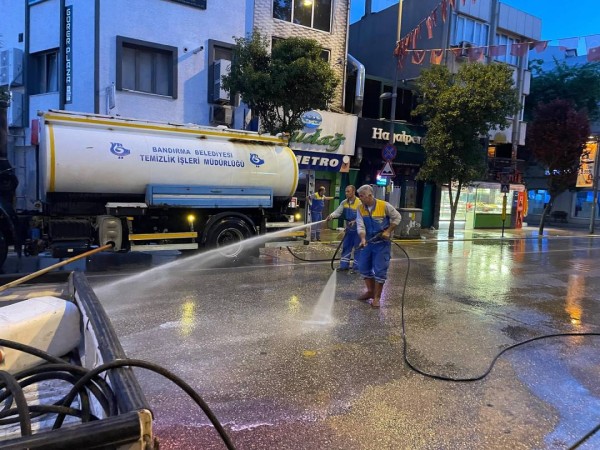 Günün ilk ışıklarıyla birlikte Bandırma için görev başındayız. Saat 05:00 itibarıyla temizlik işleri ekibimiz, kentimizin cadde ve sokaklarında temizlik çalışmalarını sürdürüyor. Daha temiz, daha yaşanabilir bir Bandırma için gece gündüz demeden çalışıyor; hemşehrilerimize tertemiz bir güne uyanacakları bir kent hazırlıyoruz.