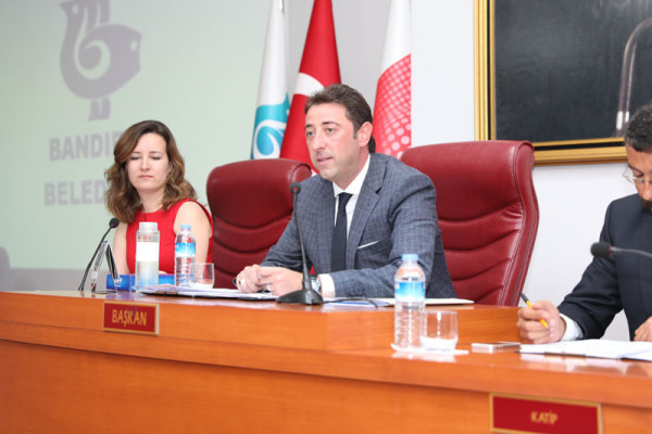 HAZİRAN AYI MECLİS TOPLANTISI YAPILDI Bandırma Belediyesi’nin haziran ayı olağan meclis toplantısı Tolga Tosun başkanlığında yapıldı. Toplantıya mazeretlerinden dolayı Meclis Üyeleri Zeynep Özdemir ve Ozan Onur katılmadı. Gündem maddelerine geçmeden önce açılış konuşmasını gerçekleştiren Belediye Başkanı Av. Tolga Tosun, Bandırmalı vatandaşlarımızın ve Belediye Meclis Üyelerinin geçmiş Ramazan Bayramı’nı kutlayarak toplantıya başladı. Başkan Tosun: “Tüm Bandırmalı Hemşerilerimizin ve siz değerli Belediye Meclis Üyelerimizin geçmiş Ramazan Bayramı’nı kutluyorum. Bildiğiniz gibi Ramazan ayı boyunca geleneksel olarak düzenlediğimiz İftar Soframız bu yılda vatandaşlarımızın hizmetine sunduk. Bu organizasyonun vatandaşlarımızla buluşmasına destek veren hayırsever iş adamlarımıza ve vatandaşlarımıza buradan bir kez daha teşekkür ediyorum” dedi. Konuşmasının diğer bölümünde Büyükşehir Belediyesi’nden Bandırma Belediyesi’ne devir olan ilaçlama çalışmaları hakkında meclis üyelerine bilgi veren Başkan Tolga Tosun, yeni dönemde ilaçlama çalışmalarının Büyükşehir Belediyesi’nin destekleriyle Bandırma Belediyesi ekiplerince yerine getirileceğini belirtti. Tosun; çalışmalar kapsamında Büyükşehir tarafından İlaç desteğinin sağlanacağını ve ayrıca işlemler için daha sonra mahsuplaşamaya gidileceğini sözlerine ekledi. Konuşmaların ardından Meclis oturumu geçmiş döneme ait tutanağın oylamaya sunulması ve ilgili maddelerin imar komisyonuna havale edilmesiyle devam edildi. Gündemin diğer maddelerinde pazaryeri tahsis ücreti alınmasına karar verilerek buna göre pazarcılardan alınacak tahsis ücreti 3 bin TL olarak belirlendi. Zabıta müdürlüğünden gelen Açık-Kapalı İşgaller hakkındaki yazı Karma Komisyona (İmar Komisyonu ve İnceleme ve Araştırma Komisyonuna) havale edildi. İşgallerle ilgili olarak bilgi veren Başkan Tosun, önceki dönemlerde işgallerle ilgili yapılmış bir çalışmayla genel hatlar belirlendiğini belirterek yeni dönemde de Açık ve Kapalı İşgaller konusunda bir güncelleme çalışmasına ihtiyaç duyulduğuna ve bu nedenle de ilgili komisyonlarda tartışılıp yeni bir şekle kavuşturmak istediklerini söyledi. Gündem maddelerinin ardından gelen evrakların görüşülmesine geçildi.  İlk olarak bir önceki mecliste alınan Halkbankası’ndan kredi kullanımı yetkisinde yetki değişikliğine gidilerek diğer bankalarla da kredi kullanımı yetkisine dönüştürüldü. Vatandaşlarımızın yoğun talepler nedeniyle Destek Hizmetleri Müdürlüğü’nden gelen evrak üzerine Belediyemiz şantiyesinde üretimi gerçekleşen Bank, Kamelya v.b. ürün gruplarının satışına olanak sağlayacak fiyat belirleme talebi Fiyat Tespit Komisyonuna havale edildi. Ayrıca Aksakal ve Edincik’ te yer alan iş makinası ve greyderlerin belirli bir ücret karşılığında kullanımına olanak sağlayacak fiyatlandırma talebi de yine Fiyat Tespit Komisyonuna havale edildi. Oturumun son bölümünde ise Eğitim, Gençlik, Kültür ve Sanat Komisyonu, Deprem ve Doğal Afet Komisyonu, Kadın-Yaşlı-Engelli-Düşkün Komisyonu ve Çevre ve Sağlık Komisyonlarının kurulması konusu oybirliğiyle kabul edildi.