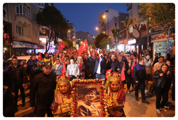 Atatürk’ün İstanbul’dan yola çıktığı Bandırma Vapuruyla Samsun’a ulaştığı, özgürlük ve bağımsızlığımızın ilk adımının 103. yıl dönümündeyiz. 1919’dan bugüne, aynı heyecan ve coşkuyla; Büyük Önder Atatürk’ü, vatan uğruna canlarını feda eden şehitlerimizi, Kurtuluş Savaşımızın tüm kahramanlarını saygıyla anıyoruz. 19 Mayıs Atatürk’ü Anma, Gençlik ve Spor Bayramı, her yıl olduğu gibi bugün de Bandırma’da büyük bir coşkuyla kutlandı. Bandırma Belediyesi’nin düzenlediği kutlamalar, saat 20:30’da geleneksel Cumhuriyet Gençleri Kortej Yürüyüşü ile başladı. Şehirdeki STK temsilcileri, spor kulüpleri, taraftar birlikleri, Kent Konseyi gibi paydaşların rengarenk kostümler, Türk Bayrakları, özlü sözlerin olduğu pankartlar ve hep beraber söylenen marşlarla katıldığı korteje, Belediye Başkanı Av. Tolga Tosun ve eşi Seda Tosun’un yanı sıra; CHP Genel Başkan Yardımcısı Balıkesir Milletvekili Ahmet Akın, Garnizon Komutanı Hv. Plt. Tuğgeneral Selahattin Akalp, CHP İlçe Örgütü Başkanı Selim Panç, İYİ Parti İlçe Başkanı Necmi Sert, Genç Parti İlçe Başkanı Ali Karaaslan, Meclis Üyeleri, CHP Kadın Kolları da katıldı. Kortejin sonunda Cumhuriyet Meydanında buluşan tüm Bandırmalılar, Cumhuriyetimizin kurucusu Gazi Mustafa Kemal Atatürk, silah arkadaşları, kahraman şehit ve gazilerimizin manevi huzurunda saygı duruşunda bulunarak, hep bir ağızdan İstiklal Marşımızı okudular. Atatürk ilkelerini benimsemiş, Cumhuriyetimizin kuruluş değerlerinin önemini bilen binlerce Bandırmalı meydanda adeta tek yürek olmuştu. Gençlik Konseri öncesi Belediye Başkanı Tolga Tosun: “Karanlığı yırtan aydınlığıyla Mustafa Kemal’i Samsun’a taşıyan vapura ismini veren, destanları kıskandıran Kurtuluş Savaşımızda, Ayyıldız Tepe’de düşmana son kurşunun sıkıldığı bu şehri seviyorum. Cumhuriyet ve Atatürk’ten asla vazgeçmeyen Bandırma’yı, siz sevgili Bandırmalı hemşerilerimi çok seviyorum. Meydanları dolduran bu büyük coşku, Cumhuriyetimize olan inancımızın resmidir. Aklımız, hedefimiz, kararımız bir: Atatürk’ün kurduğu laik Türkiye Cumhuriyetimizi sonsuza dek yaşatacağız. Bu inanç ve cesaretin önüne hiç kimse geçemez. Bandırma Belediyesi olarak düzenlediğimiz fener alayı ve kortejimize, Türkiye’nin en iyi rap şarkıcılarından Gazapizm’in sahne aldığı Gençlik Konserimize katılan siz sevgili gençlerimize, kutlamalarda emeği geçen herkese çok teşekkür ediyorum” dediği konuşmasını “19 Mayıs Atatürk’ü Anma, Gençlik ve Spor Bayramımız kutlu olsun. Yaşasın Mustafa Kemal, yaşasın Türkiye Cumhuriyeti” diyerek tamamladı. Bandırmadaki kutlamalara katılan, CHP Genel Başkan Yardımcısı Balıkesir Milletvekili Ahmet Akın, Belediye Başkanının ardından yaptığı konuşmada: “103 yıl önce Bandırma Vapuruyla Samsun’a ulaşarak, karanlığa bir güneş gibi doğan Atatürk’ün izindeyiz. Bandırma Vapurundaki o azme, cesaret ve kararlığa sahibiz. Birlikte başaracağız. 19 Mayıs Atatürk’ü Anma, Gençlik ve Spor Bayramımız kutlu olsun” dedi. Konuşmaların ardından anons edildiğinde büyük bir alkış tufanıyla sahne alan Gazapizm, en çok sevilen şarkılarını seslendirirken, Cumhuriyet Meydanını dolduran binlerce Bandırmalı gençlerin oluşturduğu koro da kendisine eşlik etti. Belediye Başkanı Av. Tolga Tosun, Gazapizm (Anıl Acar)’a, 19 Mayıs Atatürk’ü Anma, Gençlik ve Spor Bayramı Gençlik Konserine katıldığı için teşekkür ederek çiçek takdim etti.