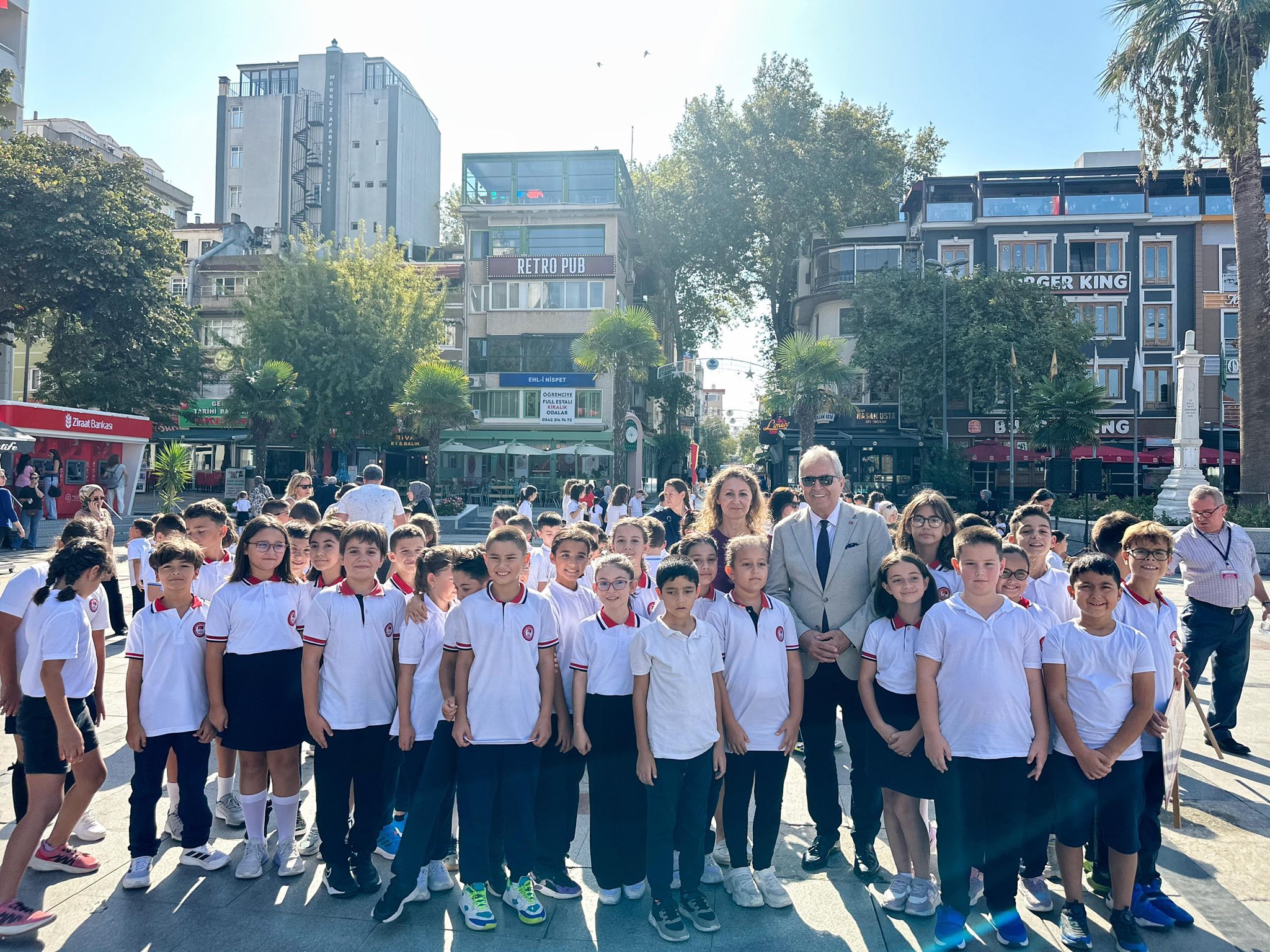 İlköğretim Haftası dolayısıyla İlçe Milli Eğitim Müdürlüğümüzün Cumhuriyet Meydanı’nda düzenlediği çelenk sunma törenine katıldık. Bu tören çok heyecanlıydı çünkü öğrenciler arasında oğlum Umut Çınar Mirza’da vardı.