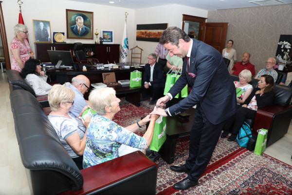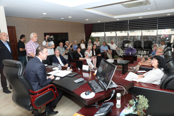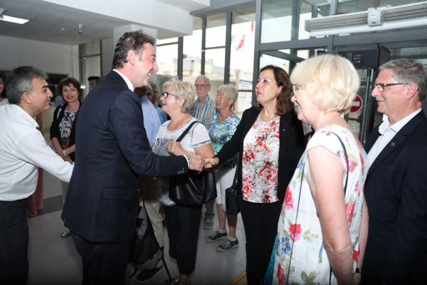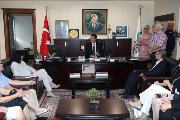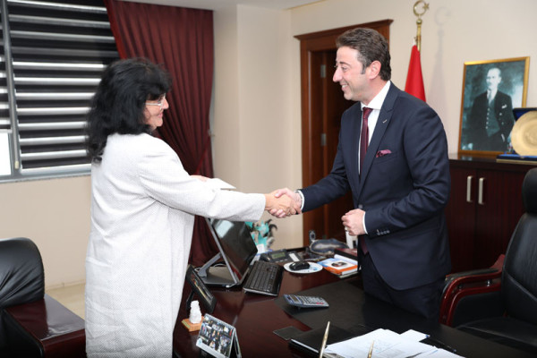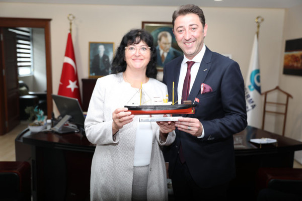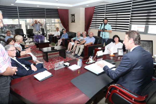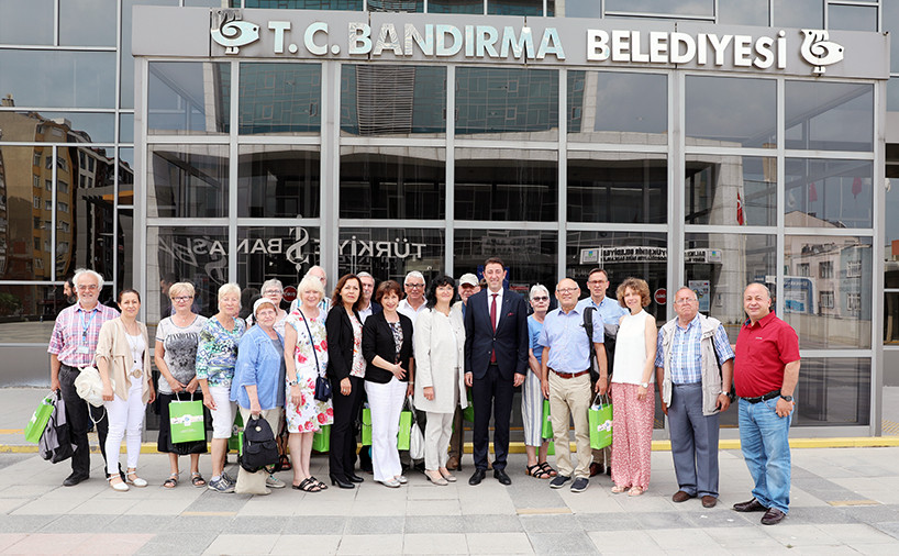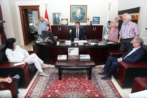 KARDEŞ ŞEHİR KAMEN BELEDİYE BAŞKANI ELKA KAPPEN BELEDİYE BAŞKANIMIZ AV. TOLGA TOSUN’U MAKAMINDA ZİYARET ETTİ   Kardeş şehir Almanya’nın Kamen kenti Belediye Başkanı Elka Kappen ve beraberindeki heyet kardeş şehir ilişkilerinde 20. yıla girilmesi sebebi ile Belediye Başkanımız Av. Tolga Tosun’u makamında ziyaret etti.   Ziyarette Belediye Başkan Yardımcıları Metin Ok ve Ozan Onur’da hazır bulundu.   Ziyarette konuşan Belediye Başkanımız Av. Tolga Tosun: “Öncelikle hepinize tüm Bandırma halkı adına hoş geldiniz demek istiyorum. Bu kardeşlik ilişkileri başlayalı 20 sene oluyor. İnşallah bu ilişkilerimiz daha fazla büyüyerek devam eder. Geçmiş dönem Belediye Başkanlarımıza bu kardeşlik ilişkilerini başlattıkları ve devam ettikleri için teşekkür ediyorum. Bandırmamız güzel bir şehir, limanı, demir yolu, sanayisi, turizmi ve tarımı ile gelişmiş güzel bir kent. Önümüzdeki birkaç günde bölgemizi gezerek inceleme fırsatınız olacak. Umarım memnun kalırsınız. Ben tekrardan hepinize geldiğiniz için teşekkür ediyorum” dedi.   Kardeşlik ilişkilerimizin başladığı 20 yıldan bugüne tekrardan burada olmaktan çok mutlu olduğunu belirten Kamen Belediye Başkanı Elka Kappen: “Tolga Başkanı seçim sonuçları için tebrik ediyorum. Ben ilk defa Bandırmaya geliyorum onun için bu ziyaretin benim için önemi çok büyük. Şehirlerarası kardeşlik ilişkileri uzun vadede tarihe çok güzel anılar ve hatıralar katıyor. Kültür alışverişi ve insanların birbiri ile ilişkisi çok önemli, maalesef kaybolmakta olan bir özellik onun için biz bu tür kardeşlik ve kültürel ilişkilere çok önem veriyoruz. Ben Kamen’de deniz olmamasına üzülüyordum ancak artık üzülmüyorum kardeş şehrimizde deniz olması beni çok mutlu etti. Burası çok güzel bir şehir burada olmaktan çok mutluyuz” dedi.   Konuşmaların ardından Belediye Başkanımız Av. Tolga Tosun, Kamen Belediye Başkanı Elka Kappen’e Belediye projeleri hakkında bilgi verdi. İki Başkan gerçekleştirilecek sosyal projeler hakkında karşılıklı görüş alışverişinde bulundu. Karşılıklı görüş alışverişinden sonra Almanya’daki Belediyecilik ve Türkiye’deki Belediyecilik hakkında birbirlerine bilgiler verdi.     Ziyaret sonunda Belediye Başkanımız Av. Tolga Tosun, Kamen Belediye Başkanı Elka Kappen’e şehrimizin sembolü haline gelen Minyatür Bandırma Vapurunu ve beraberinde gelen heyete de kentimizi hatırlatan çeşitli hediyeler takdim etti.