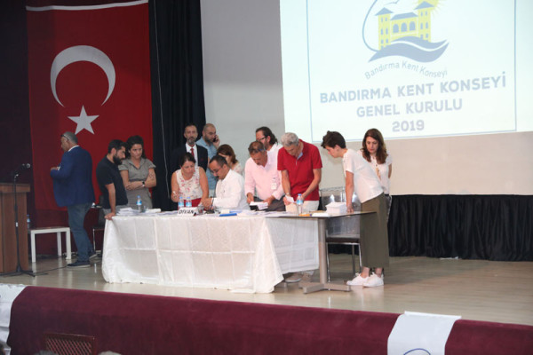 KENT KONSEYİ BAŞKANLIĞINA DR. MURAT ERGÖZ SEÇİLDİ Bandırma Kent Konseyi’nin 8 Temmuz’da Barış Manço Kültür Merkezi’nde gerçekleştirilen 3 turlu seçimin kazananı Dr. Murat Ergöz oldu. Bandırma Kent Konseyi’nin Barış Manço Kültür Merkezinde gerçekleştirilen Olağan Genel Kurul saygı duruşu ve istiklal marşının okunması ile başladı. Kent Konseyi Genel Kurulunda konuşarak, her adayın çok değerli olduğunu belirterek sözlerine başlayan Belediye Başkanımız Av. Tolga Tosun: “Bandırma Kent Konseyimizin olağan seçimli genel kuruluna hepiniz hoşgeldiniz. Görüyorum ki Kent Konseyi başkanlığı yapabilecek birbirinden kıymetli ve gerekli bilgi donanıma sahip 4 adayımız var. Adaylarımızın seçim çalışmalarına baktığımızda yerel seçim havasında geçen kampanya dönemine tanıklık ettik. Hangi adayımız kazanırsa kazansın Belediyemizle iş birliği içerisinde kentimize hizmet edeceğimizden kimsenin şüphesi olmasın. Tüm adaylarımıza şimdiden başarılar diliyorum. Bandırmamıza hayırlı uğurlu olsun” dedi. Divan ADD Başkanı Serdar Polat, Katip Üyeleri Gönül Karabulut ve THK Başkanı Varol Memişler’den oluştu. Başkanlık için Necdet Mancılık, Nermin Mutlu, Mustafa Gürsoy ve Dr. Murat Ergöz yarıştı. Yürütme kurulu için çarşaf liste olarak 18 kişi seçilmek için ter döktü. İlk tur oylamada delegeler hem başkan adayı hem de yürütme kurulu için iki sandıkta oy kullandı. İlk Tur sonuçlarına göre Murat Ergöz 73, Nermin Mutlu 36, Necdet Mancılık 28 ve Mustafa Gürsoy 5 oy alabildi. Yönetmelik gereği ilk turda herhangi bir aday oyların üçte ikisini alamadığı için ikinci tura geçildi. İkinci turda delegeler sadece başkan adaylığı için oy kullandı. 2. Tur seçimlerine göre Murat Ergöz 73 olan oyunu korurken, Nermin Mutlu 26, Necdet Mancılık 19 ve Mustafa Gürsoy ise 1  oy aldı. Yönetmeliğe göre ikinci turda en çok oy alan Murat Ergöz ve Nermin Mutlu üçüncü tura kaldı. Üçüncü turda Murat Ergöz 76 oy, Nermin Mutlu 29 oy aldı. Bu sonuçlara göre Murat Ergöz 2 yıllık Kent Konseyi Başkanlı görevine seçilmiş oldu. Yürütme Kurulu Listesi; Belgin Şentürk, Deniz Taylan, Kadri Cihan, Levent Balkış, Turgay Menek, Barış Tütüncü’den oluştu.