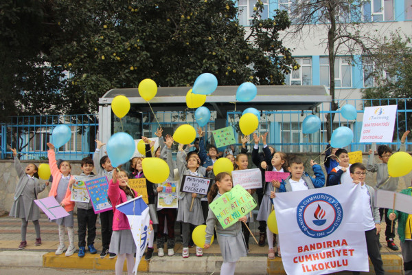KENTİMİZDE “DURAKTA MATEMATİK PROJESİ” BAŞLADI Kentimizde “Durakta Matematik Projesi” hayata geçirildi. Bandırma Cumhuriyet İlkokulu 3/G Sınıfı öğrencileri öğretmenleri Raziye Güneş ‘in rehberliği ile ilçemizde, Milli Eğitim Bakanlığı Yenilik ve Eğitim Teknolojileri Genel Müdürlüğü bünyesinde kurulmuş olan uluslararası e-Twinning Projesi kapsamında “Durakta Matematik” uygulamasını hayata geçirmek için otobüs durağında etkinlik düzenlendi. Proje kapsamında matematiğin kitap, okul, öğrenci ve öğretmenim dörtgeninden çıkarıp 7'den 70'e hayatın her alanına yayılması hedefleniyor. Matematik öğretmeni Mukaddes Karip ve eşi Mehmet Karip öğretmenlerimizin kuruculuğunu yaptığı, 7’den 70’e herkese matematiği sevdirmek, matematik korkularını gidermek için kendi çizimlerinden oluşan bir e-Twinning projesi kapsamında il ve ilçelerin otobüs duraklarına karikatür ve resimli matematik işlemlerinin yer aldığı afişler asılarak herkesin faydalanması ve matematik korkusunun yenilmesi amaçlanmıştır. Proje kısa zamanda her il ve ilçeden gönüllü öğretmenlerin katılımıyla proje çalışması geniş kitlelere ulaştı. Türkiye de 81 il ve ilçelerde, Arnavutluk, Romanya, Azerbaycan ve Almanya da çalışmalar başladı. Çalışmalar proje ortaklarının yaşadığı şehirlerdeki duraklara afişler asıldı ve hız kesmeden asılmaya devam ediyor.  “Durakta Matematik” projesi uygulamasını Paşakonak Mahallesi Hamit Kaplan Caddesi üzerinde bulunan otobüs durağında Bandırma Belediye Başkan Yardımcısı Ozan Onur ve Cumhuriyet İlkokulu Müdürü Mustafa Akgül kurdele keserek birlikte başlattı. Açılışta konuşan Belediye Başkan Yardımcısı Ozan Onur, “Böyle bir projeye imza attıkları için ilçe Milli Eğitim Müdürlüğü’nü ve öğretmenlerimizi kutluyorum. Bu örneğin ülkemizdeki ve bölgemizdeki diğer okullarda da sürmesini ve öğrencilerimizin bu olanaktan faydalanması bir yerel yönetici olarak en büyük temennimiz, inşallah öylede olacaktır” dedi.