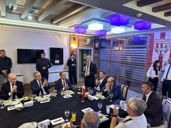 Balıkesir Valimiz Sn. İsmail Ustaoğlu, Garnizon Komutanımız Hava Pilot Tuğgeneral Sn. Esat Çetin, Balıkesir İl Jandarma Komutanımız Sn. Nurettin Alkan, Balıkesir Büyükşehir Belediye Başkanımız Sn. Ahmet Akın, Bandırma Kaymakamımız Sn. Engin Aksakal, Sn Başsavcımız, Emniyet müdürümüz, Jandarma komutanımız.Erdek Belediye Başkanımız Sn. Burhan Karışık, Gönen Belediye Başkanımız Sn. İbrahim Palaz, Manyas Belediye Başkanımız Sn. Ahmet Duru, Susurluk Belediye Başkanımız Sn. Hakan Yıldırım Semizel, Bandırmaspor Onursal Başkanımız Sn. Onur Göçmez, Kulüp Başkanımız Sn. Serdar Kuter, Beşiktaş Spor Kulübü önceki Başkanı Sn. Hüseyin Yücel, meclis üyelerimiz, Bandırmaspor Yönetimi ve değerli iş insanlarımızla bir araya geldik. Kentimizin ortak değeri Bandırmaspor’umuz için düzenlenen moral ve destek programına katıldık. Takımımızın yanında olmaya, desteğimizi büyütmeye devam edeceğiz. Bu anlamlı organizasyonda emeği geçen herkese teşekkür ediyor, Bandırmaspor’umuza Süper Lig yolunda yürekten başarılar diliyorum. Bu birliktelik bizi başarıya ulaştıracaktır!