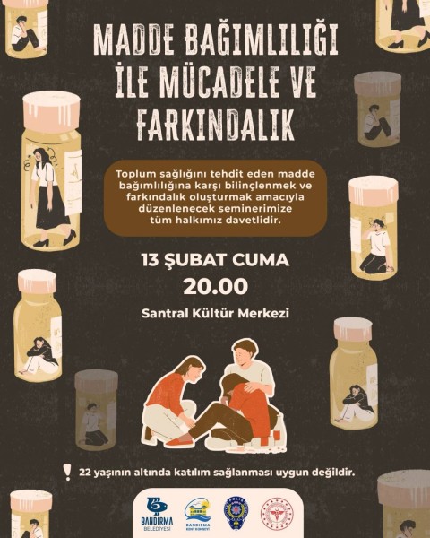 Bandırma Belediyesi olarak, toplum sağlığını tehdit eden madde bağımlılığına karşı bilinçlenmek ve farkındalık oluşturmak amacıyla düzenlenen seminere tüm hemşehrilerimizi davet ediyoruz.