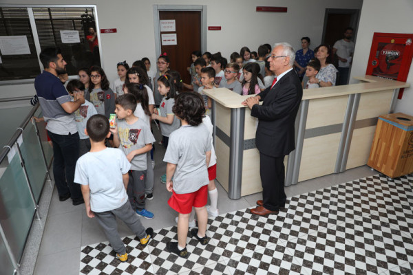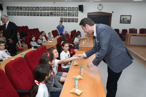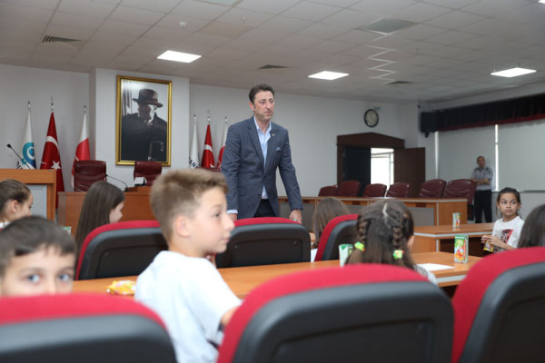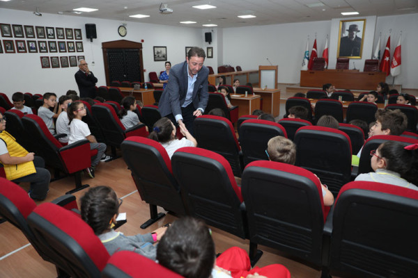 ÖĞRENCİLER YEREL YÖNETİMLER DERSİNİ BAŞKAN TOLGA TOSUN’DAN DİNLEDİ   Kentimizdeki öğretim kurumlarından Özel Bahçeşehir Okulu 3. sınıf öğrencileri yerel yönetimler hakkında bilgi edinmek amacıyla Belediye Başkanımız Av. Tolga Tosun’u ziyaret etti. Belediye Başkanımız Av. Tolga Tosun, öğrencileri Belediye meclis salonunda misafir ederek hepsi ile tek tek ilgilendi. Yerel yönetimler, belediyenin yaptığı çalışmalar, belediyenin işleyişi ve belediye bünyesinde bulunan müdürlüklerin görevleri hakkında merak ettikleri her şeyi Belediye Başkanı Av. Tolga Tosun’dan dinleyen öğrenciler, hem ilk elden bilgi aldılar hem de belediye başkanı ile tanışıp merak ettikleri soruları sorma fırsatı buldular. Meclis salonundaki görüşme sonrası tüm öğrencilere belediye binası içerisindeki müdürlükleri ve birimler gezdirilerek tüm birimler hakkında bilgiler verildi.