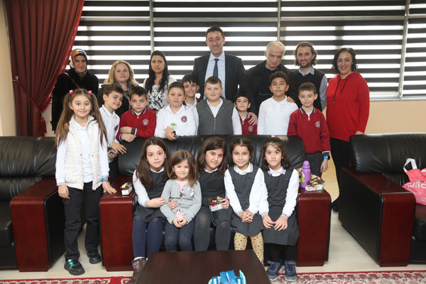 ÖĞRENCİLERDEN BAŞKAN AV. TOLGA TOSUN’A ZİYARETLER   Bandırma Cumhuriyet İlkokulu Müdürü Mustafa Akgül, 3/G Sınıf Öğretmeni Raziye Güneş ve 3/G sınıfı öğrencileri, Durakta Matematik Projesi’ne destek olduğu için Belediye Başkanı Av. Tolga Tosun’a teşekkür ziyareti gerçekleştirdi.   Bu ziyaretin hemen ardından Bandırma Marmara İlkokulu 3/B Sınıf Öğretmeni Doğan Bulut ve 3/B sınıf öğrencileri, BENGİ Projesi kapsamında okullarına destek olduğu için Belediye Başkanı Av. Tolga Tosun’a teşekkür etti.   Belediye Başkanı Av. Tolga Tosun ziyaretlerle ilgili duyduğu memnuniyeti dile getirerek: “En önemli yatırım eğitim ve öğretime yapılan yatırımdır düşüncesi ile Belediyemizin imkanları ölçüsünde tüm okullarımıza destek olmaya çalışıyoruz. Çocuklarımızın en iyi şartlarda öğretim görmeleri için okullarımızın çevre düzenlemesi, onarım ve tadilat, malzeme ve durumu olmayan öğrencilerimize kıyafet yardımları yapıyoruz. Yapılan destekleri bir elin verdiğini diğer el görmesin hassasiyeti ile gerçekleştiriyoruz. Bandırmamızın eğitim başarısı konusunda marka bir şehir olması için Milli Eğitim Müdürlüğümüz ile sürekli koordineli bir şekilde çalışarak tüm okullarımızın ihtiyaçlarına cevap vermeye çalışıyoruz” dedi.