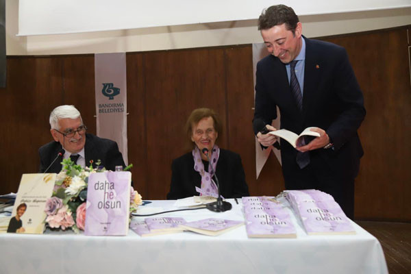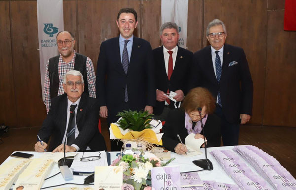 PAKİZE BAŞARAN VE ÖNDER BALIKÇI KİTAPLARINI İMZALADILAR Bandırma Belediyesi 8 Mart Dünya Kadınlar Günü Etkinlikleri Kapsamında kentimizin önemli yazarlarından Pakize Başaran’ın “Daha Ne Olsun” isimli kitabı ve Gazeteci Yazar Önder Balıkçı’nın “Edebiyatın Gülen Yüzü Pakize Başaran” kitabı Santral Kültür Merkezinde gerçekleştirilen söyleşi ve imza günü etkinliği ile okuyucuları ile buluştu. Söyleşide Pakize Başaran, kitabında yer alan şiirlerini seslendirerek, şiirlerini yaşamının hangi sürecinde hangi duygu ile yazdığını aktardı. Pakize Başaran ve Önder Balıkçı, kitapların basılmasını sağlayan Belediye Başkanı Av. Tolga Tosun’a teşekkür etti. Söyleşi sonunda söz alan Belediye Başkanı Av. Tolga Tosun: “Kentimizin değerlerinden Pakize Başaran’ın ve önemli gazetecilerinden Önder Balıkçı’nın kitaplarını basmaktan ve söyleşisine katılmaktan mutluluk duyuyorum. Bandırma Belediyesi olarak edebiyatımıza katkı sunmaya devam edeceğiz” dedi. Söyleşi sonunda Kaymakam Engin Aksakal Pakize Başaran’a, Belediye Başkanı Av. Tolga Tosun Gazeteci Önder Balıkçıya Plaketlerini takdim ederek kitaplarını imzalattı. Plaket takdiminin ardından Pakize Başaran ve Önder Balıkçı okuyucularının kitaplarını imzalayarak sohbet ettiler.