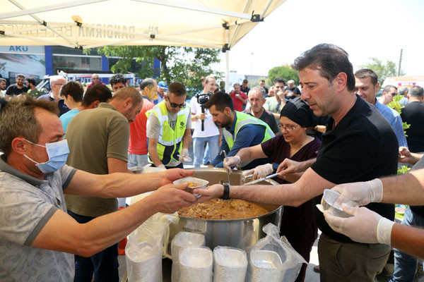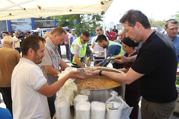 Bugün Cuma Namazından hemen sonra önce Sanayi Camii önünde, Küçük Sanayi Sitesi esnaflarımıza ve sonrasında Cumhuriyet Meydanımızda dileyen tüm vatandaşlarımıza Aşure ikram eden Başkanımız Tolga Tosun: “Bandırma Belediyesi olarak mübarek Muharrem ayında geleneksel aşure ikramlarımıza, bugün Cuma namazından hemen sonra Küçük Sanayi Sitesinde, Sanayi Cami önünde başladık. Aldığımız dualar, temenniler o kadar değerli ki! Tıpkı aşure gibi tüm farklılıklarımızla bir araya gelecek, bir olacağız. Aşure günlerinin aziz milletimiz için; adalet ve eşitliğe, huzur ve barışa, bolluk ve berekete vesile olmasını diliyorum” dedi.