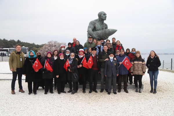 ŞEHİT AİLELERİ ve GAZİLERLE ÇANAKKALE’DE DUYGUSAL ANLAR   1914 yılında Rusya’ya savaş açan Almanya ile anlaşma yapan ve İttifak Devletleri arasında yer alan Osmanlı Devleti böylelikle 1. Dünya Savaşına resmen girmiş oluyordu. Buna karşılık, İngiltere ve Fransa’nın başını çektiği yaklaşık 40 ülkeden oluşan İtilaf Devletleri, Osmanlı İmparatorluğunun başkenti olan İstanbul'u zapt ederek; İstanbul ve Çanakkale boğazlarının kontrolünü ele geçirmek istiyorlardı. Yaptıkları planla; Çanakkale’yi geçecek, işgali tamamlayacaklardı. Unuttukları bir şey vardı! Vatan uğruna şehit olmayı şeref sayan Türk Milleti, her yaştan neferi, “Ben size taarruz emretmiyorum. Ölmeyi emrediyorum. Biz ölünceye kadar geçecek zaman içinde yerimizi başka kuvvetler ve başka komutanlar alabilir” irade ve kararlılığında Mustafa Kemal gibi komutanları tek ses olmuş, haykırıyorlardı: “Çanakkale Geçilmez!”. Dünya ülkelerindeki birçok askeri okulda ders olarak anlatılan Çanakkale Zaferimizin 107. yıl dönümündeyiz. Bandırma Belediyesi, Çanakkale Savaşlarının yaşandığı alana bir gezi düzenledi. 16 Mart Çarşamba günü gerçekleşen geziye davet edilen şehit aileleri ve gazilerimize; Belediye Başkanı Av. Tolga Tosun ve Belediye Meclis Üyeleri de eşlik etti. Gezi rehberlerinin tarihi gerçeklere sadık kalarak anlattığı savaşta yaşananlar, geziye katılanlar arasında duygusal anların yaşanmasına neden oldu. Fedakarlıklarını asla unutmayacağımız şehit ailelerimiz ve gazilerimizle yakından ilgilenen Başkan Tolga Tosun, gezi sonunda: “Kahraman şehit ve gazilerimizin kanlarıyla destan yazdığı Çanakkale’deyiz. Gazilerimiz ve şehit ailelerimiz, kadın muhtarlarımız ve meclis üyerimizle birlikte; tarihe altın harflerle yazılan Çanakkale Zaferimizin yaşandığı her tabya ve siperi ziyaret ettik, her anıtta saygı duruşunda bulunduk.  Çanakkale Savaşları, asla kopmayacak bağlarla bizlere millet olma şuuru aşılamıştır. Bize bu cennet vatanı armağan eden, başta Yüce Önderimiz Gazi Mustafa Kemal Atatürk’ü, kahraman şehit ve gazilerimizi rahmet, minnet, saygıyla anıyorum” dedi.  Bandırma Belediyesi Kültür Turları kapsamında gerçekleştirilen Çanakkale Şehitlikleri Ziyaretine katılan; Kıbrıs Gazileri Derneğinin Başkanı ve Gazi Arif Can, 57. Alay Şehitliğinde milli duygularla şiir okudu ve "Yaşlanmış olsam da bugün yine canımı sevese vermeye hazırım. Bizler Mustafa Kemal Atatürk'ün askerleriyiz" dedi. Şehit Teğmen Doğuş Uran'ın babası Şaban Uran ise; "Bir oğlumuz vardı. O da vatanı için Şehitlik mertebesine ulaştı. Şimdi bizim için bütün çocuklar bizim çocuğumuz oldu. Vatanını seven her Türk gözünü kırpmadan bu "Cennet Vatan" için canını siper eder. Milli duygularla dolduğumuz böyle güzel bir ziyareti düzenleyen Belediye Başkanımıza teşekkür ediyoruz. Ulu Önderimiz Gazi Mustafa Kemal Atatürk'ü, Şehitlerimizi minnet ve rahmetle anıyorum" dedi. Kadın muhtarlarımız; çok güzel bir ziyaret olduğunu belirttiler. Özellikle de 18 Mart Çanakkale Zaferi arifesinde bu şekilde bir ziyaret düzenlenmesinden dolayı Bandırma Belediye Başkanına teşekkür ettiler. Eğitimlerini, sevdiklerini, ailelerini geride bırakarak cepheye koşan Mehmetçiklerimiz sayesinde, büyük bir zafer kazandığımız Çanakkale Savaşlarının, milletimize bedeli maalesef çok ağır olmuştur. En küçüğü 15 yaşında olan 250 binden fazla vatan evladını şehit verdiğimiz savaş sonrasında; tıbbiye, mülkiye hatta liseler bile yıllarca mezun verememiştir. “Süngü tak, yere yat” emriyle savaşın kaderini değiştiren, 19. Tümen Komutanı olarak tarih sahnesine çıkan; Yüce Önderimiz Gazi Mustafa Kemal Atatürk’ü, kahraman şehit ve gazilerimizi rahmet, minnet, saygıyla yad ediyoruz. Çanakkale, milletimizin bağımsızlık yemini, özgürlük ruhudur: GEÇİLMEZ…!