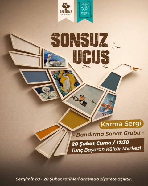 Bandırma Belediyesi ve Bandırma Sanat Grubu birliğiyle düzenlenen Sonsuz Uçuş Karma Sergisi, sanatseverlerle buluşuyor.